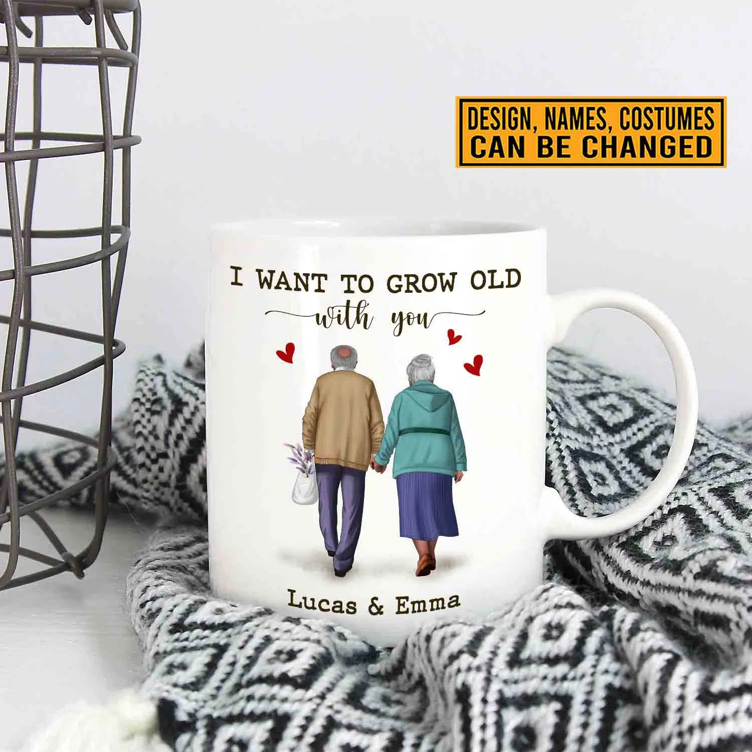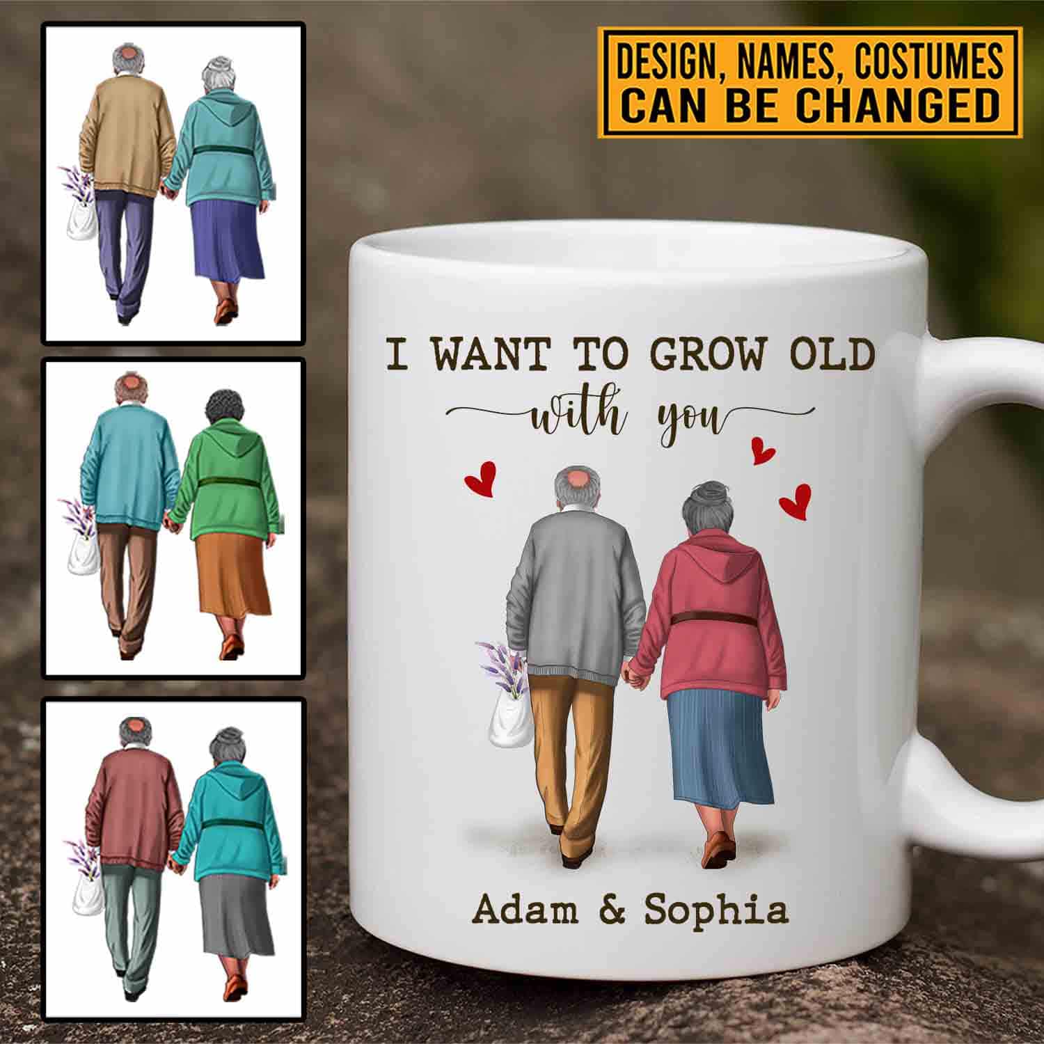 Let’s Shop Personalized I Want To Grow Old With You Old Couple Ceramic Coffee Mug – Water Bottle – Beer Stein!