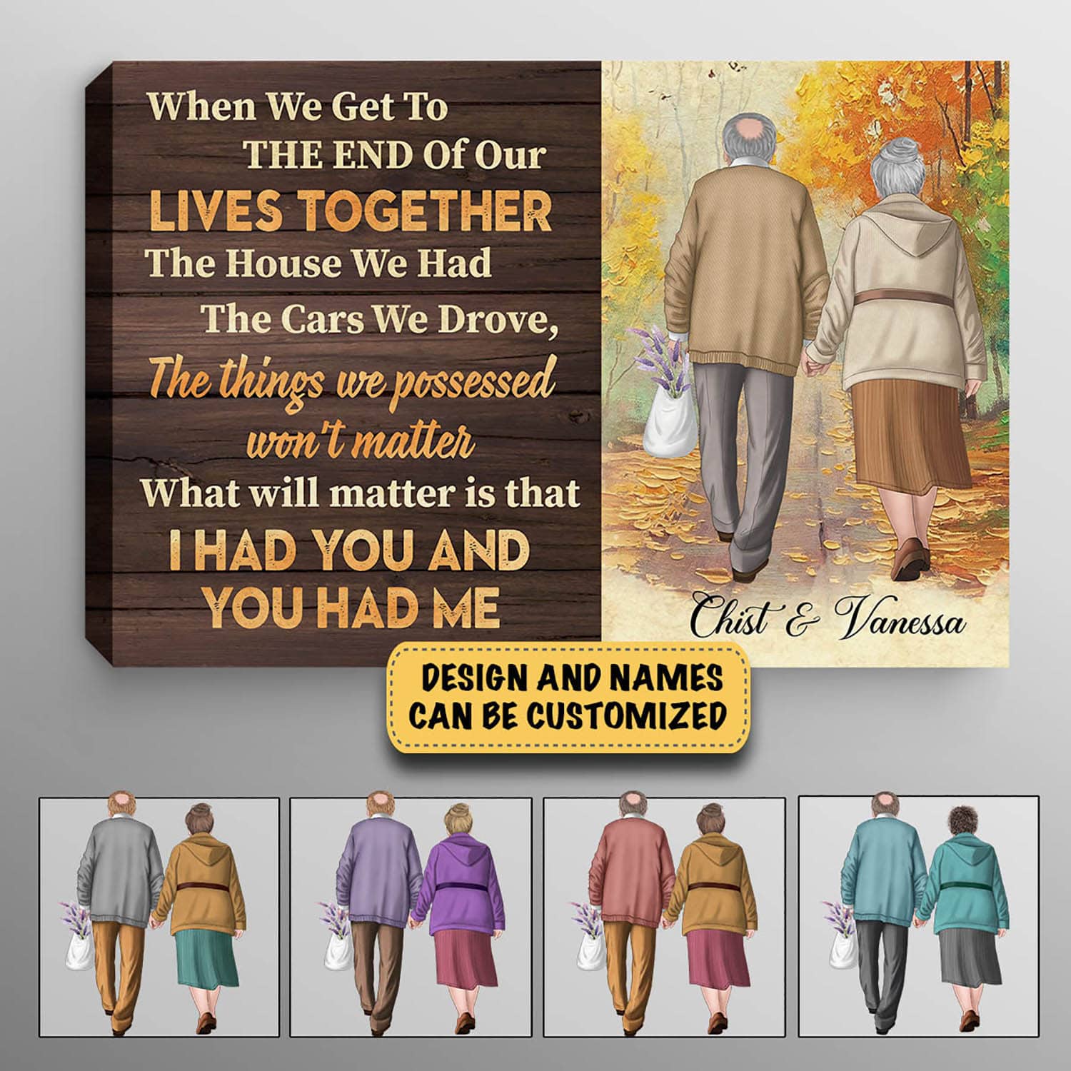 Are you spending too much time to find creative merchandise for you or suitable & special gifts for your mommy, your daddy, your son, your daughter, your children, your friends or someone you love? The struggle is over because we have various Personalized Old Couple Sign, Personalized Husband and Wife Canvas, Personalized Couple Canvas, Personalized Couple Canvas Art, Personalized Couples Canvas Wall Art, Old Couple Poster, Posters When We Get Old Couple, Family Poster Print Old Couple which will make perfect presents for your beloveds. In order to make your present stand out, we have created lots of unique and awesome customized photo gifts & personalized designs.