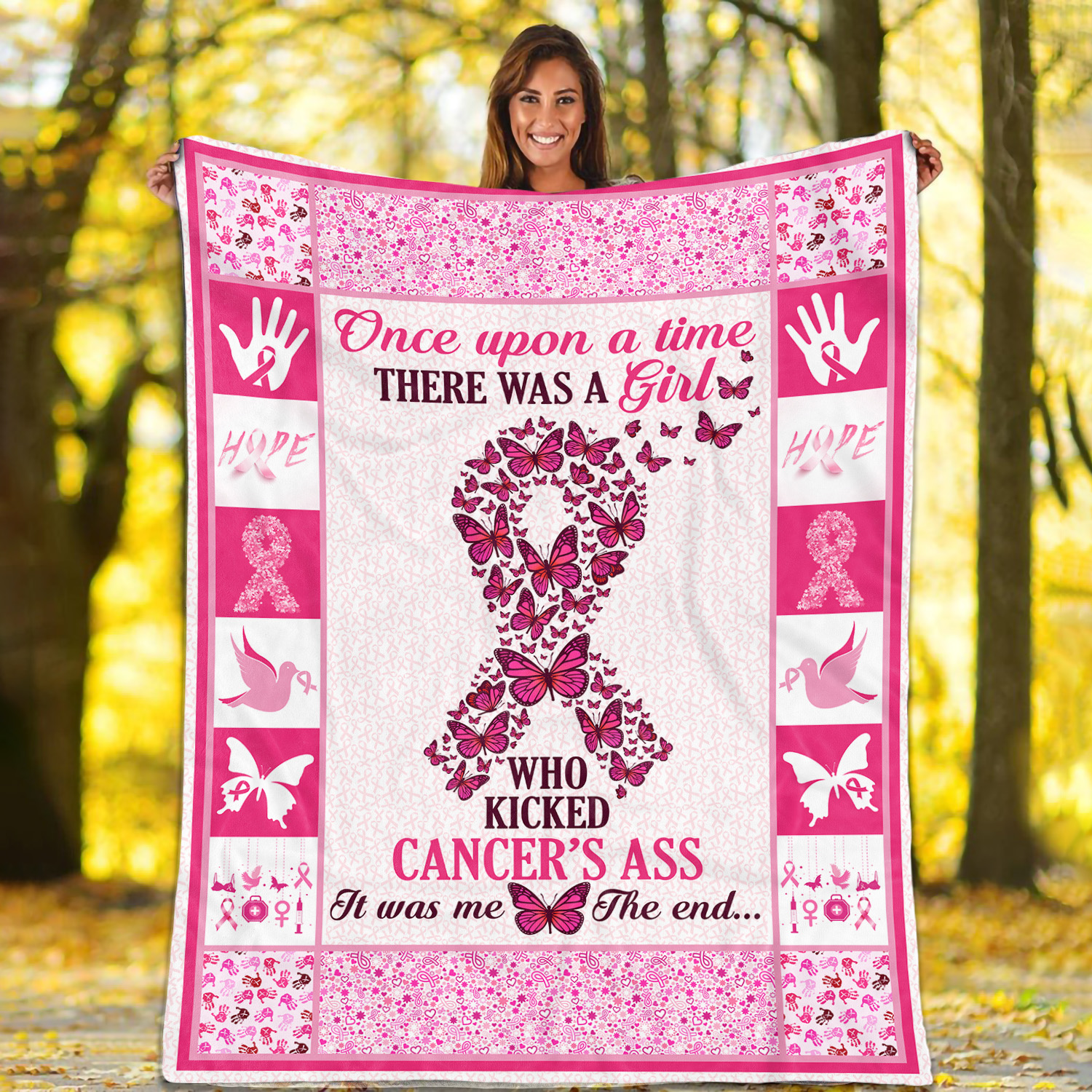Once Upon A Time There Was A Girl Who Kicked Cancer's Ass Fleece Blanket - Premium Sherpa Blanket - Woven Blanket