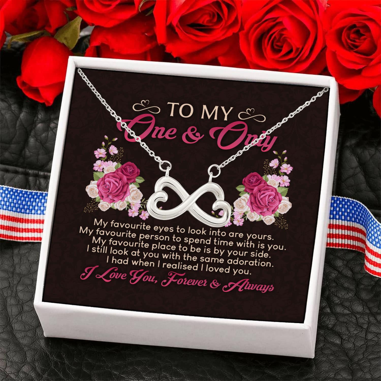 Are you spending too much time to find creative merchandise for you or suitable & special gifts for your mommy, your daddy, your son, your daughter, your children, your friends or someone you love? The struggle is over because we have various To My One And Only My Favorite Eyes To Look Into Are Yours Infinity Heart Pendant Necklace, Soulmate Necklace, Girlfriend Necklace, Wife Necklaces, Wife Necklace Sterling Silver, Wife Necklace From Husband, To My Wife Necklace, To My Girlfriend Necklace, My Soulmate Necklace, Love Necklace For Girlfriend, Cute Necklaces For Girlfriend which will make perfect presents for your beloveds. In order to make your present stand out, we have created lots of unique and awesome customized photo gifts & personalized designs.