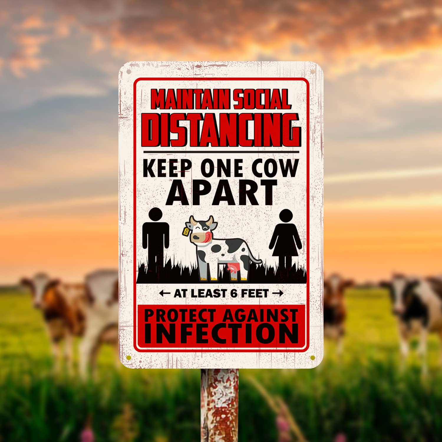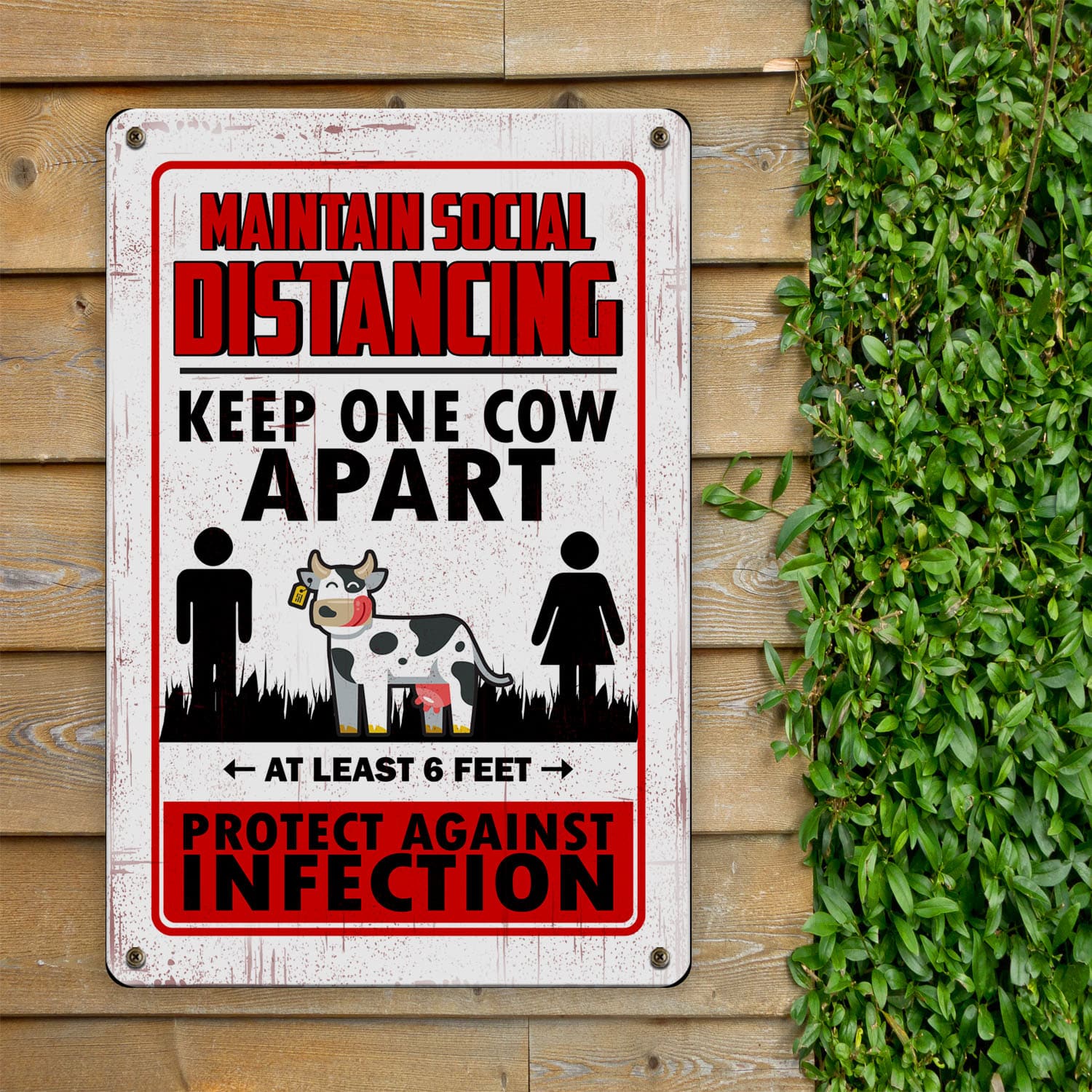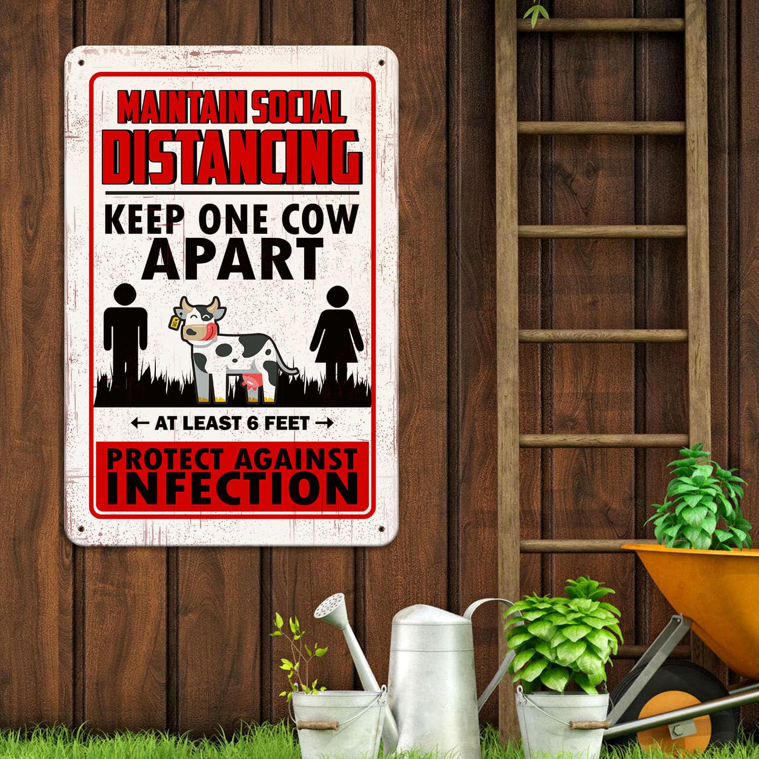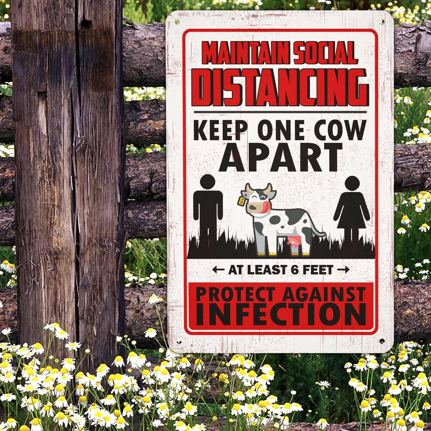 Let’s Shop Maintain Social Distancing Keep One Cow Apart Decorative Metal Sign – Indoor Outdoor Decor Farmhouse!