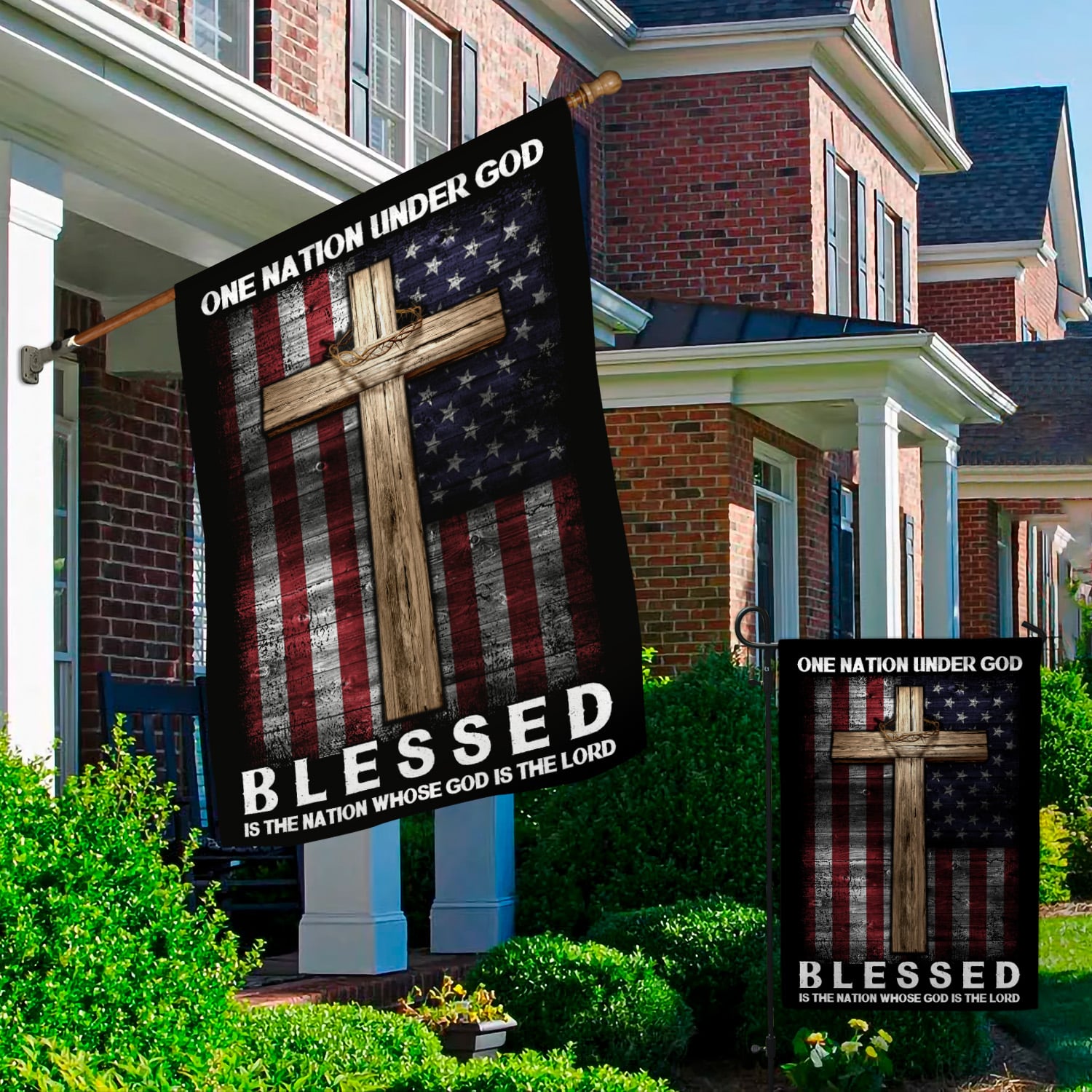 Let’s Shop Vintage American Flag Cross One Nation Under God House Flag – Blessed Is the Nation Whose God Is the Lord Garden Flag!