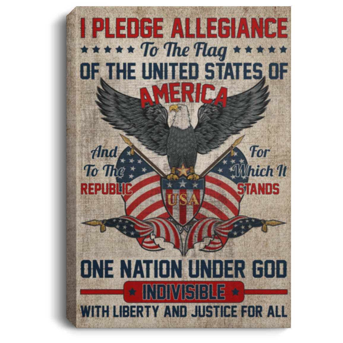 One-Nation Under God Justice-for-All Framed Canvas Prints – Unframed Poster – Patriotic Canvas Art