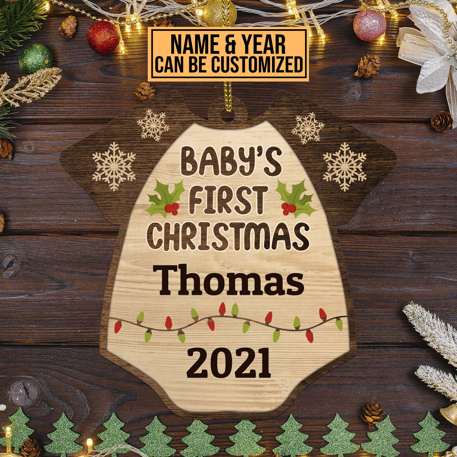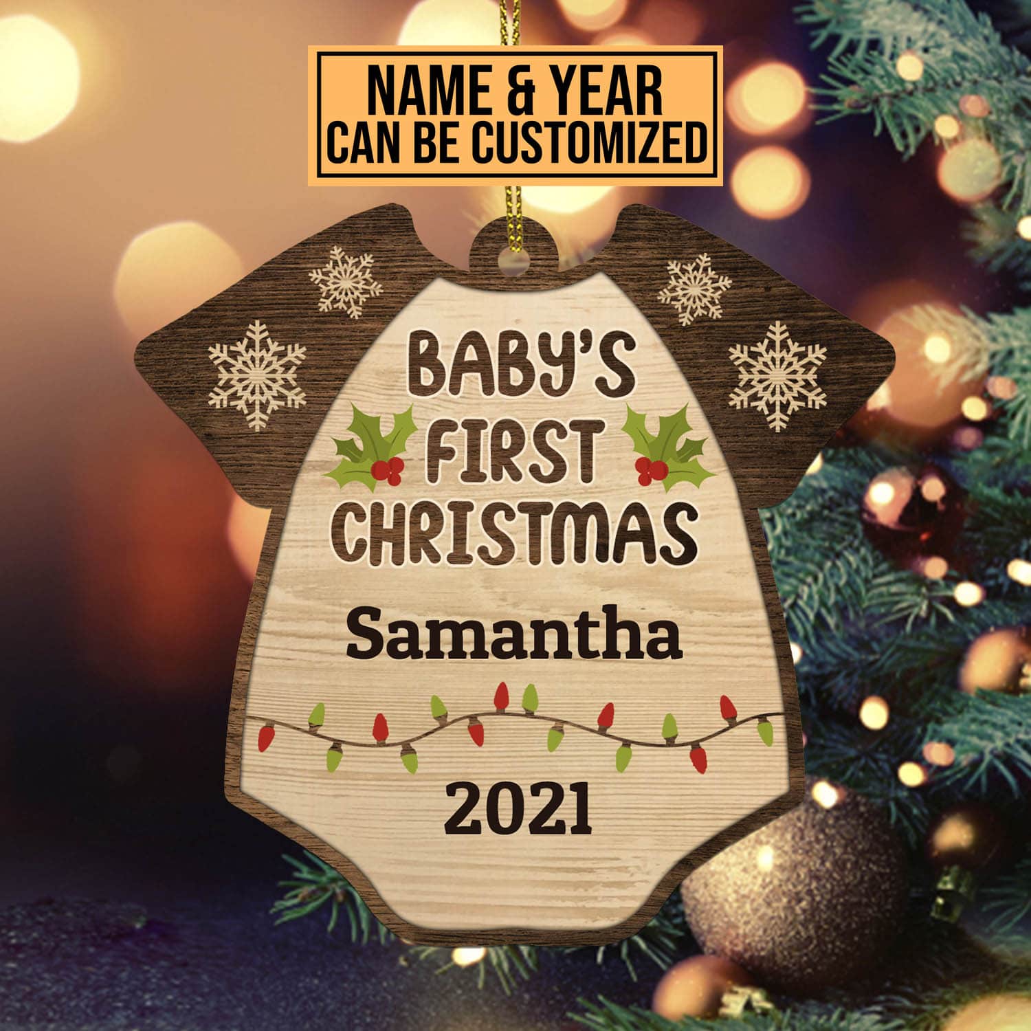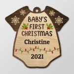 Let’s Shop Personalized Onesie Baby’s First Christmas Custom Shaped Wooden Ornament – Baby’s 1st Christmas Ornament!