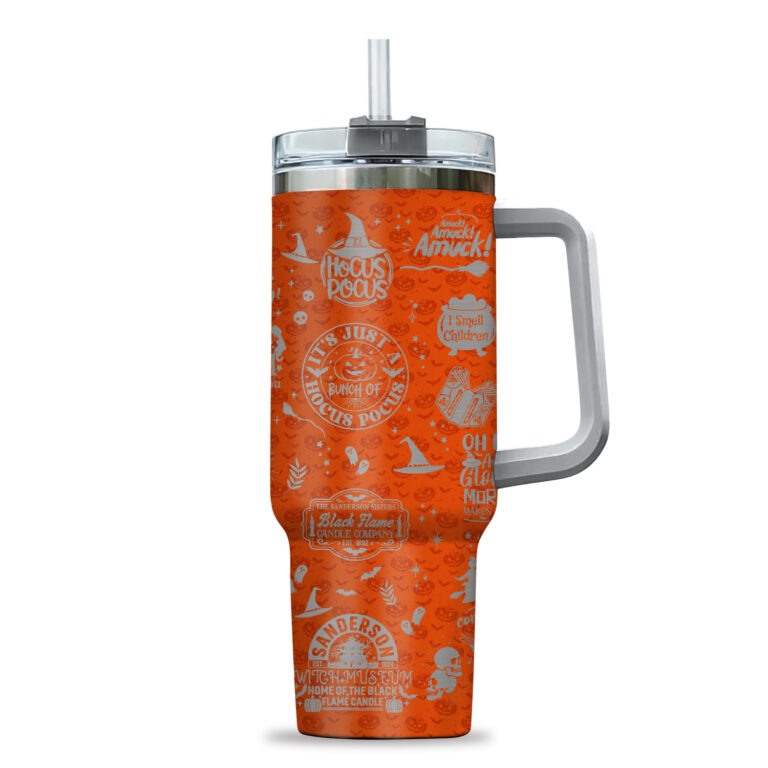 Let’s Shop Orange Hocus Pocus Tumbler with Handle 40oz Gold Silver Engraving Stainless Steel – Halloween Gifts for Movie Lovers, Sanderson Sister Gifts!