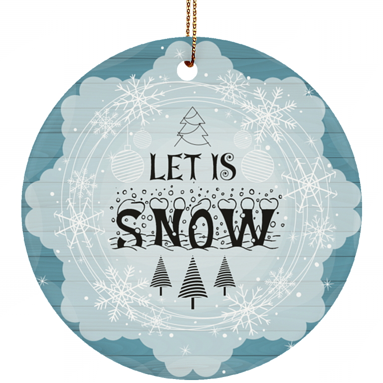 Let It Snow Christmas Ornament Keepsake – Circle Porcelain Ceramic Ornament