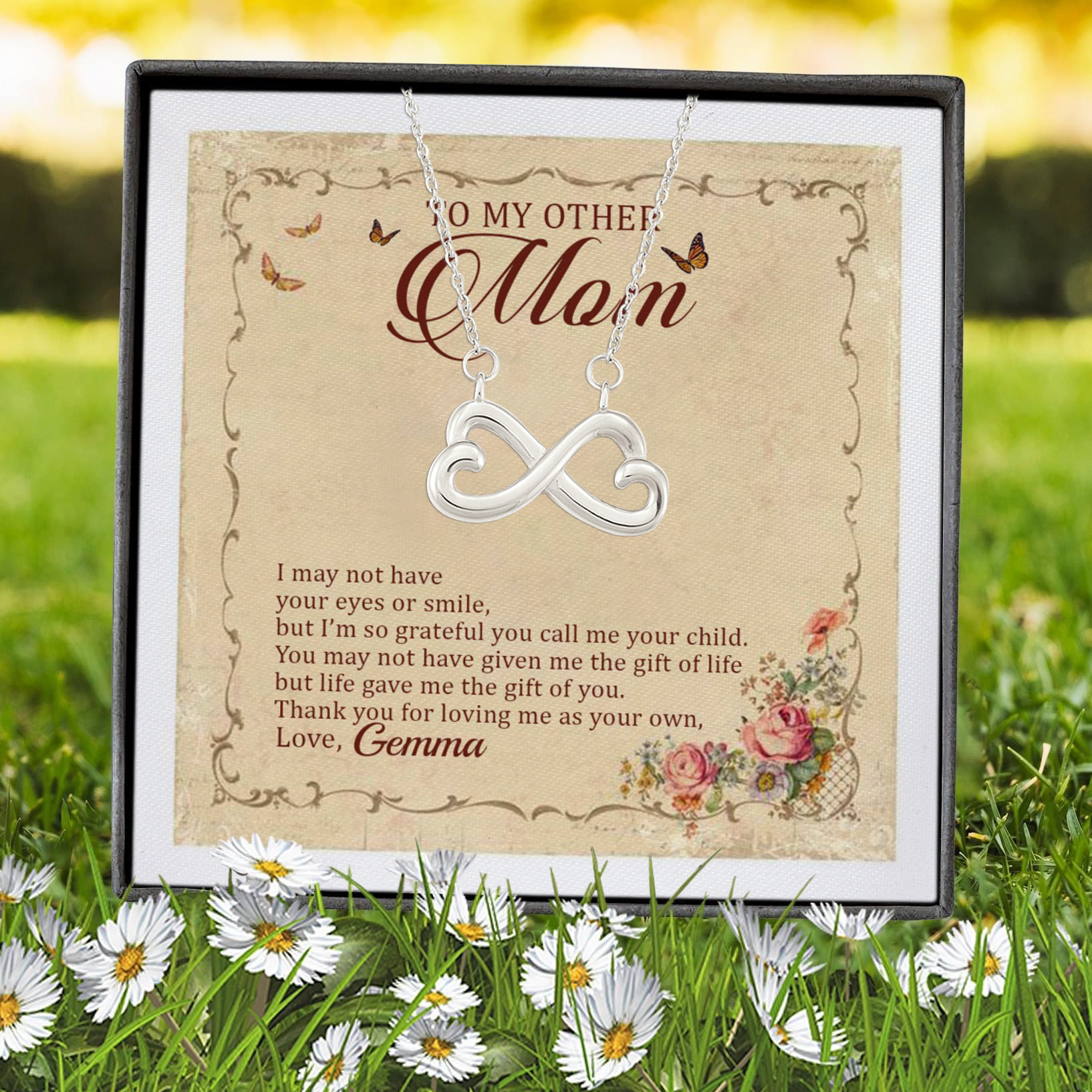 Let’s Shop Personalized To My Other Mom I May Not Have Your Eyes Or Smile Infinity Heart Pendant Necklace!