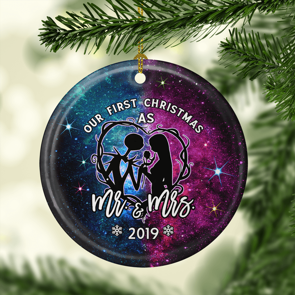 Our First Christmas As Mr Mrs Decorative Christmas Ornament - Holiday Flat Circle Porcelain Ceramic Ornament