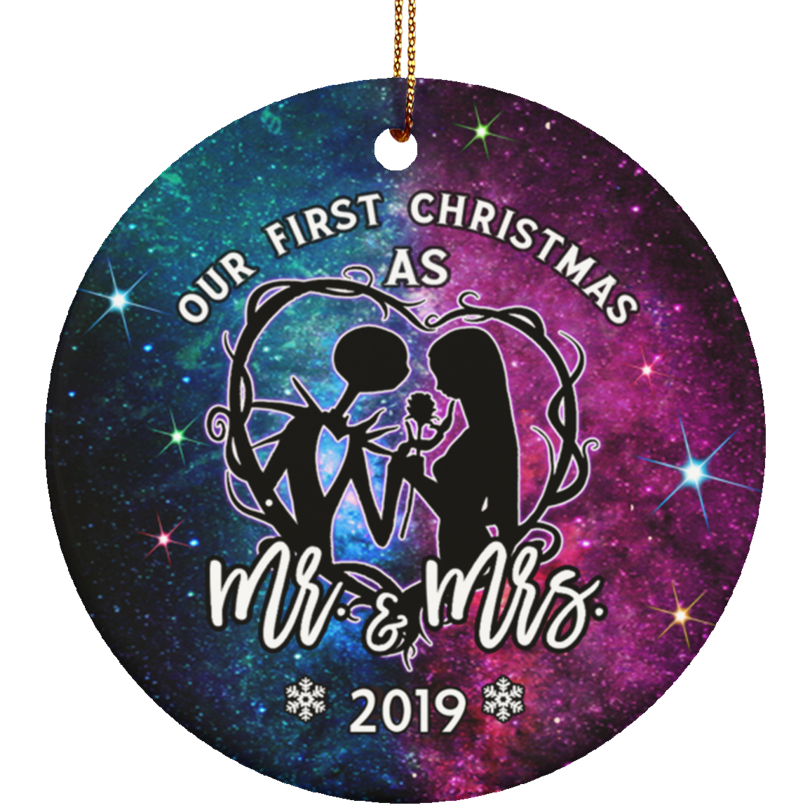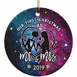 Our First Christmas As Mr Mrs Decorative Christmas Ornament – Holiday Flat Circle Porcelain Ceramic Ornament