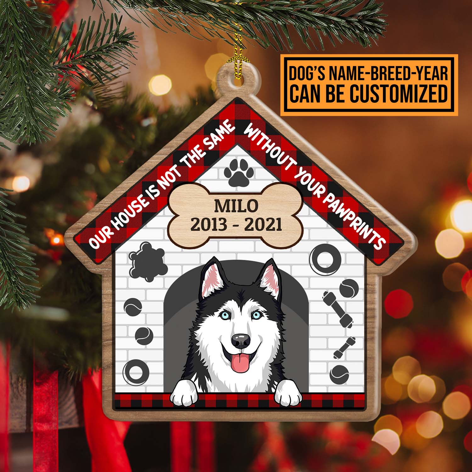 Let’s Shop Our House Is Not The Same Without Your Pawprints Personalized Custom Dog Memorial Christmas Ornament Keepsake!