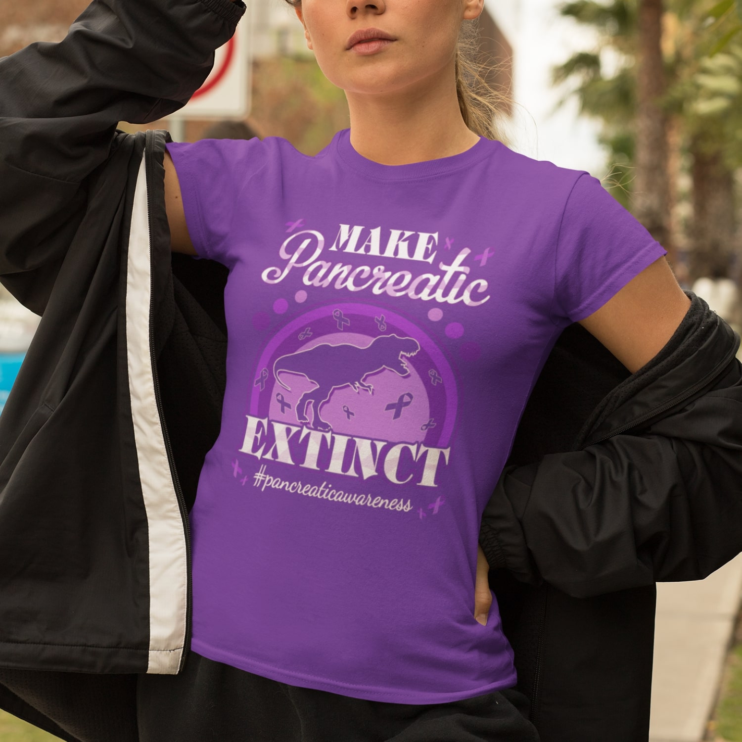 Make Pancreatic Extinct Purple T-Shirt – Pancreatic Cancer Awareness V-Neck Tee