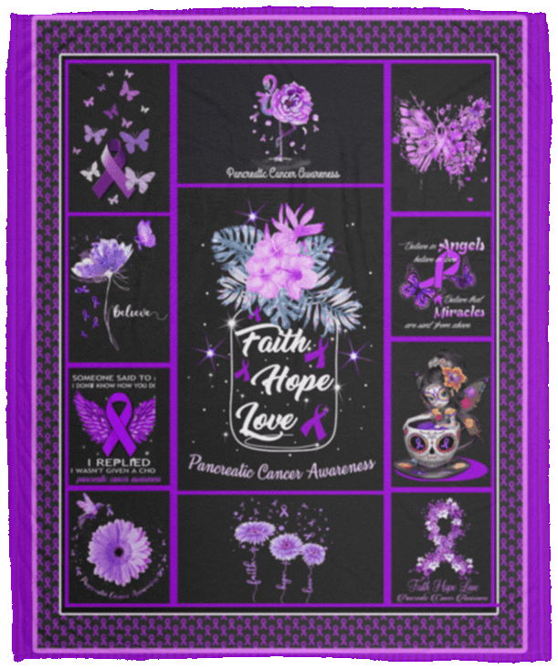 Shop Pancreatic Cancer Awareness Faith Hope Love Fleece Blanket – Premium Sherpa Blanket.