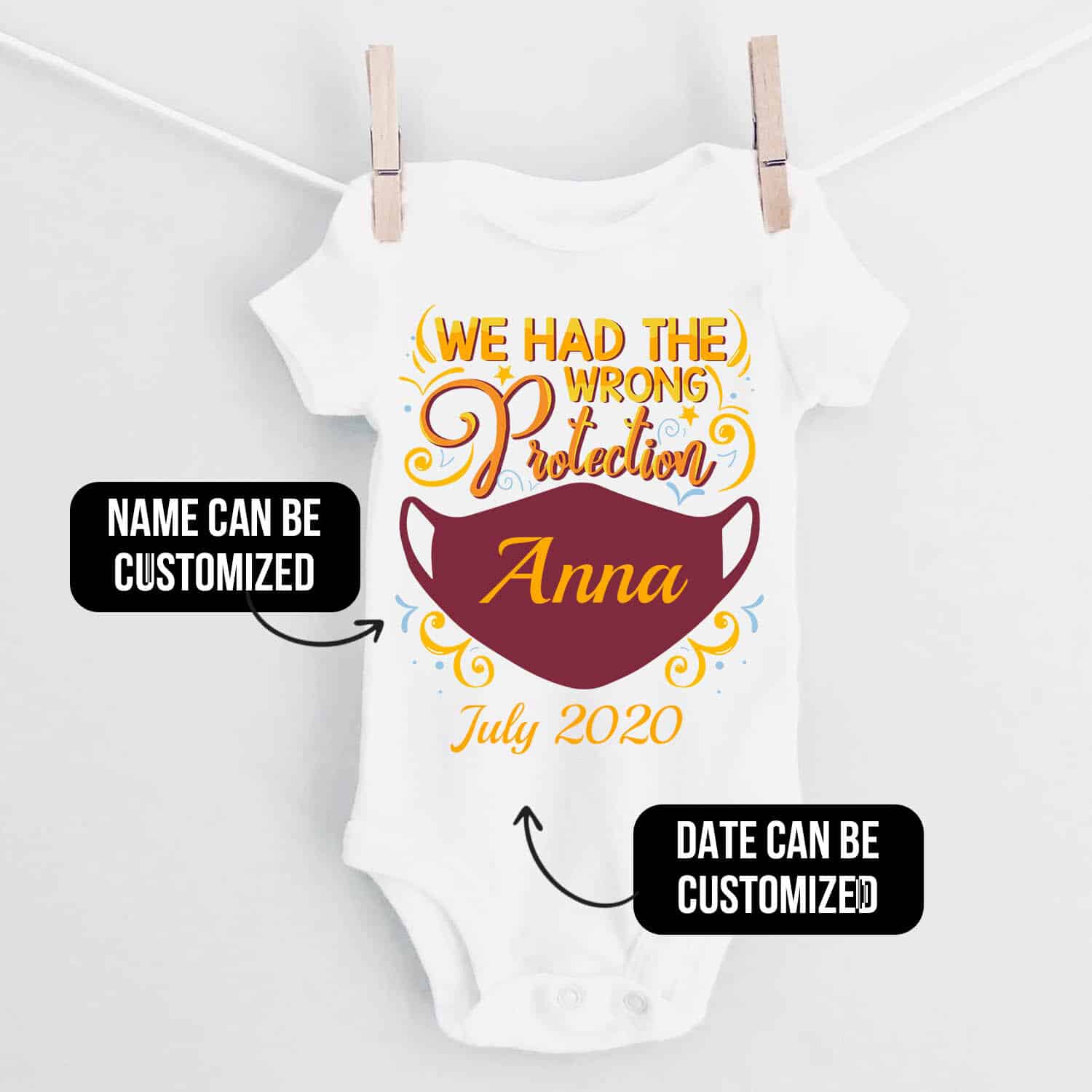 Let’s Shop Personalized Name We Had the Wrong Protection Baby Onesie-Baby Infant Bodysuit-Funny Quarantined Baby Onesie!