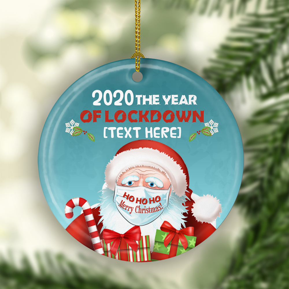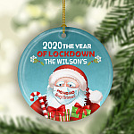 Let’s Shop Personalized 2020 The Year Of Lockdown Funny Santa Claus Wearing Mask Circle Christmas Ornament Keepsake!
