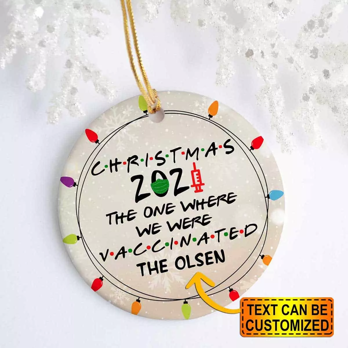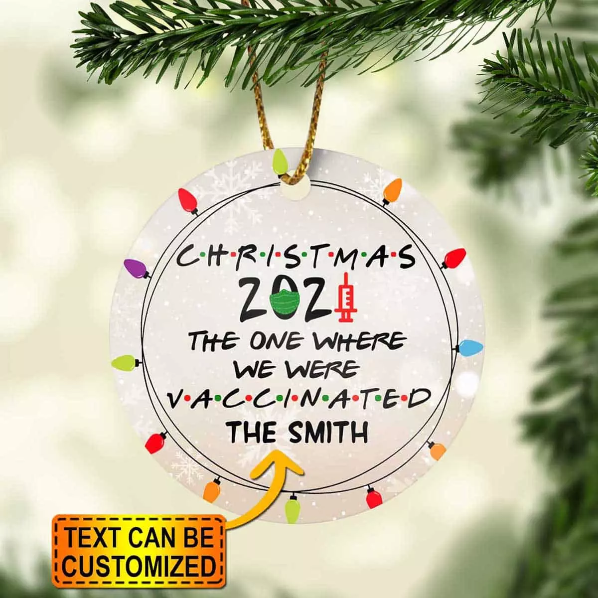 Let’s Shop Personalized Family Name Christmas 2021 the One Where We Were Vaccinated Decorative Christmas Circle Ornament Keepsake!