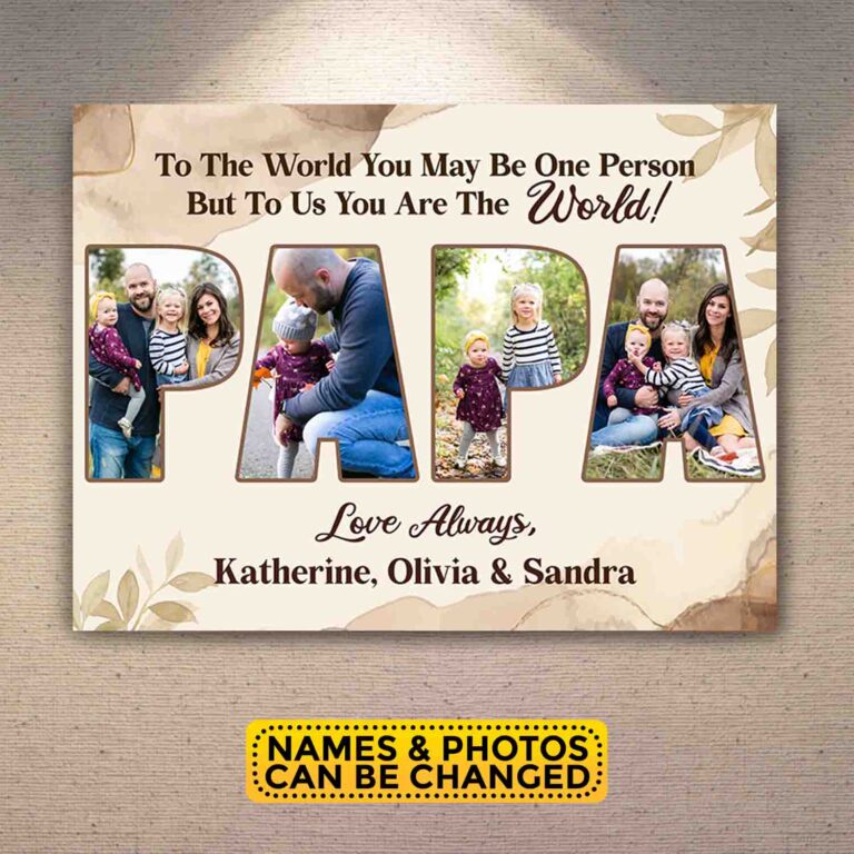 Are you spending too much time to find creative merchandise for you or suitable & special gifts for your mommy, your daddy, your son, your daughter, your children, your friends or someone you love? The struggle is over because we have various Papa Photo Collage, Customized Father’s Gift, Gift For Papa, Dad Photo Collage Gift, Personalized Gift for Papa, Gift for Him, Personalized Papa Canvas, Dad You Are The World Canvas, Custom Papa Photo Canvas, Father’s Day Custom Gift, Father’s Day Gift which will make perfect presents for your beloveds. In order to make your present stand out, we have created lots of unique and awesome customized photo gifts & personalized designs.