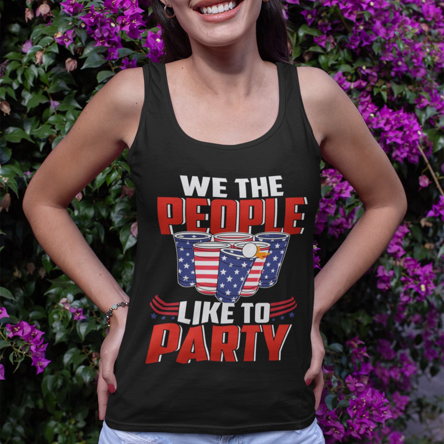 We the People Like to Party Beer Pong Cotton Tank Top Tee – Ladies Racerback Tank
