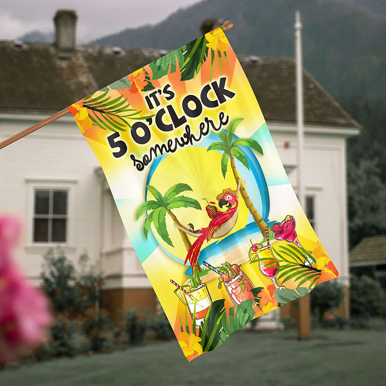 Let’s Shop Its 5 Oclock Somewhere Tropical Beach Decorations Garden Flag – House Flag – Wall Flag!