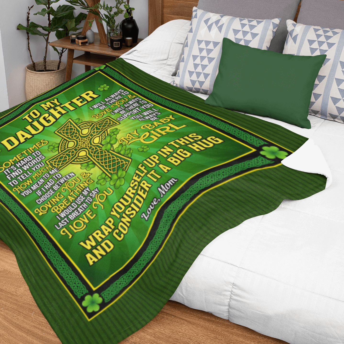 Let’s Shop Irish Celtic Cross To My Daughter I Love You From Mom Fleece Blanket – Mink Blanket – Woven Blanket!