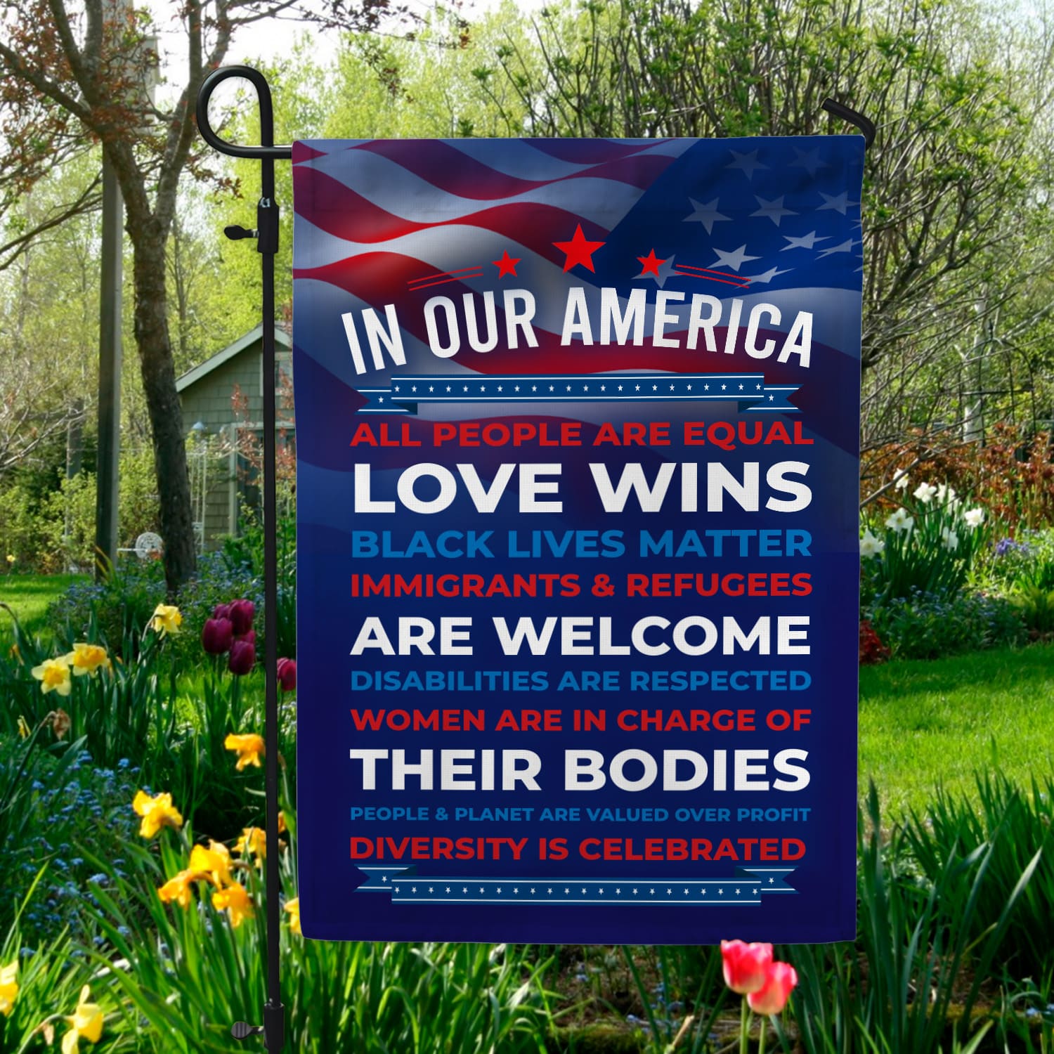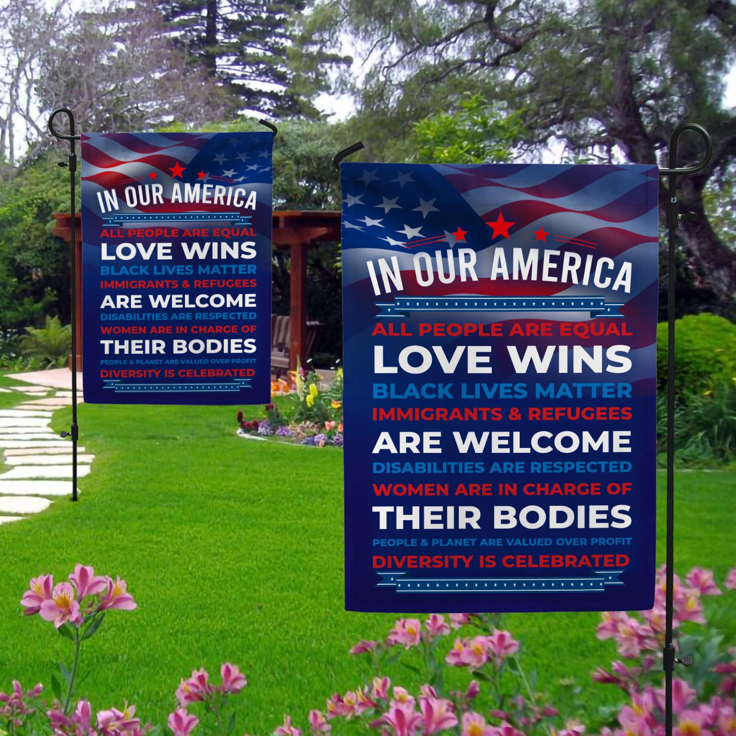 Let’s Shop Patriot American Flag in Our America All People Are Equal Garden Flag – House Flag – Wall Flag!