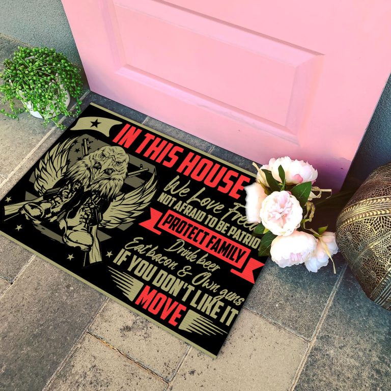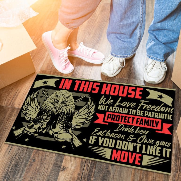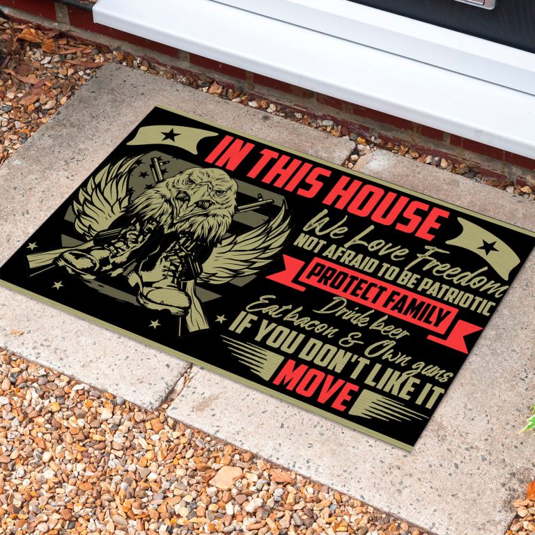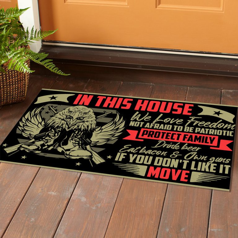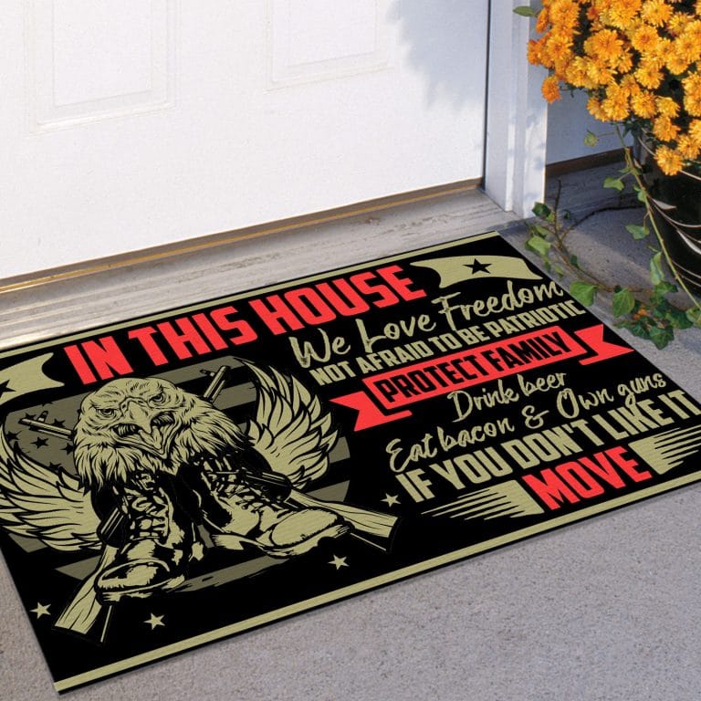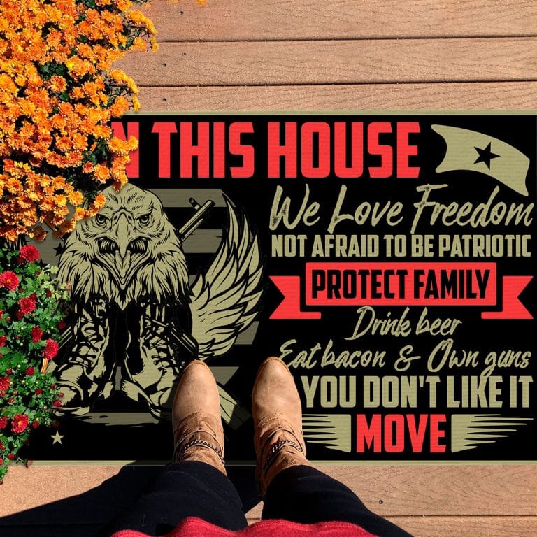 Let’s Shop In This House We Love Freedom Not Afraid To Be Patriotic Protect Family Drink Beer Eat Bacon Outdoor House Doormat!