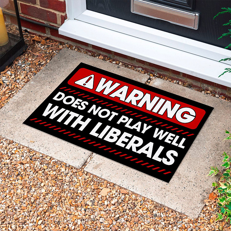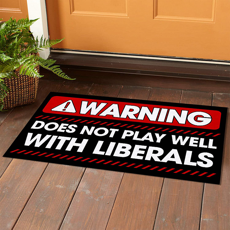 Let’s Shop Warning Does Not Play Well With Liberals Funny House Doormat – Anti Liberal Outdoor Indoor Doormat!