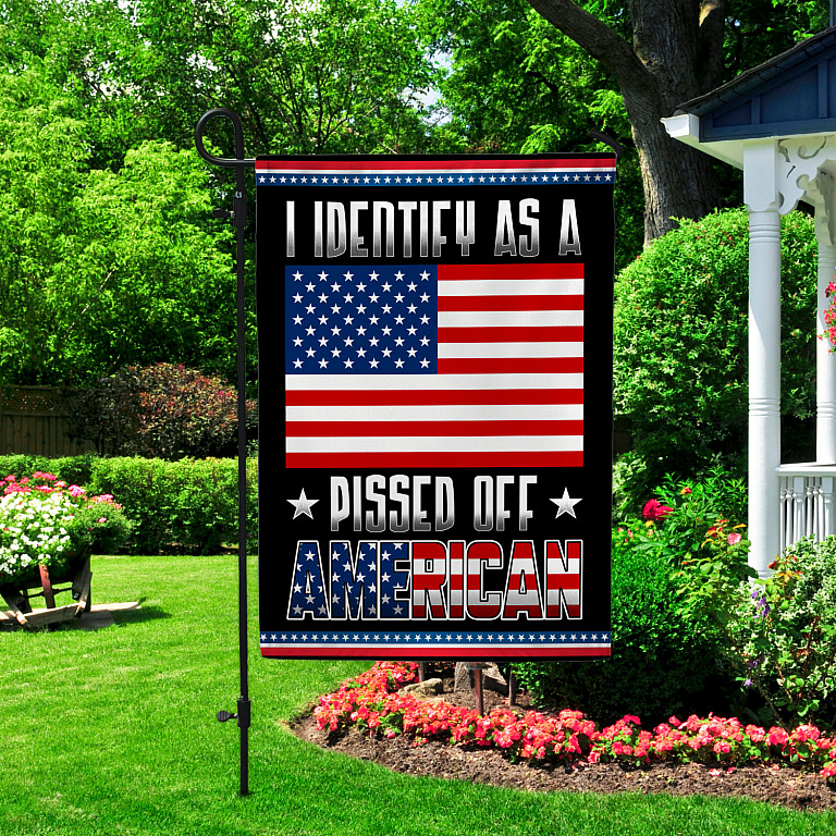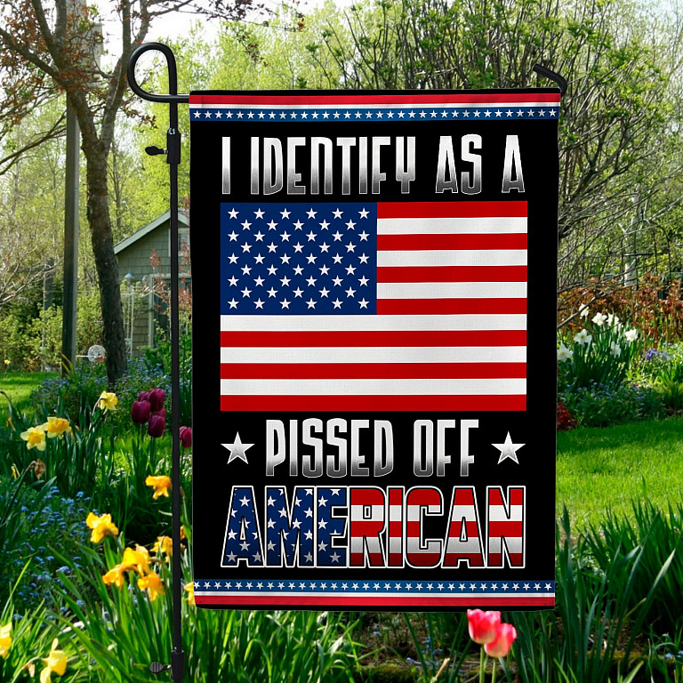 Let’s Shop I Identify As A Pissed Off American Outdoor House Flag – American Patriotic Home Garden Flag!