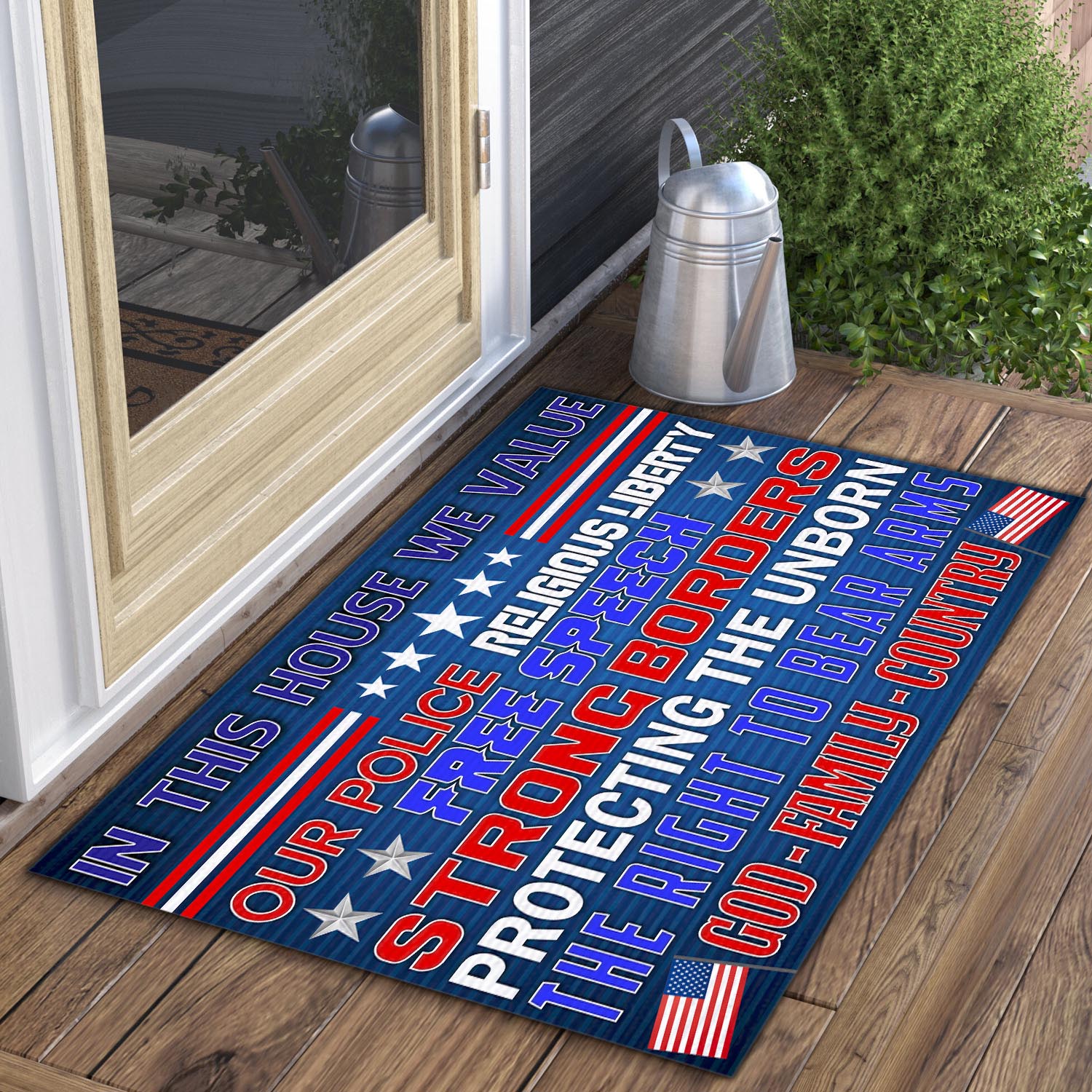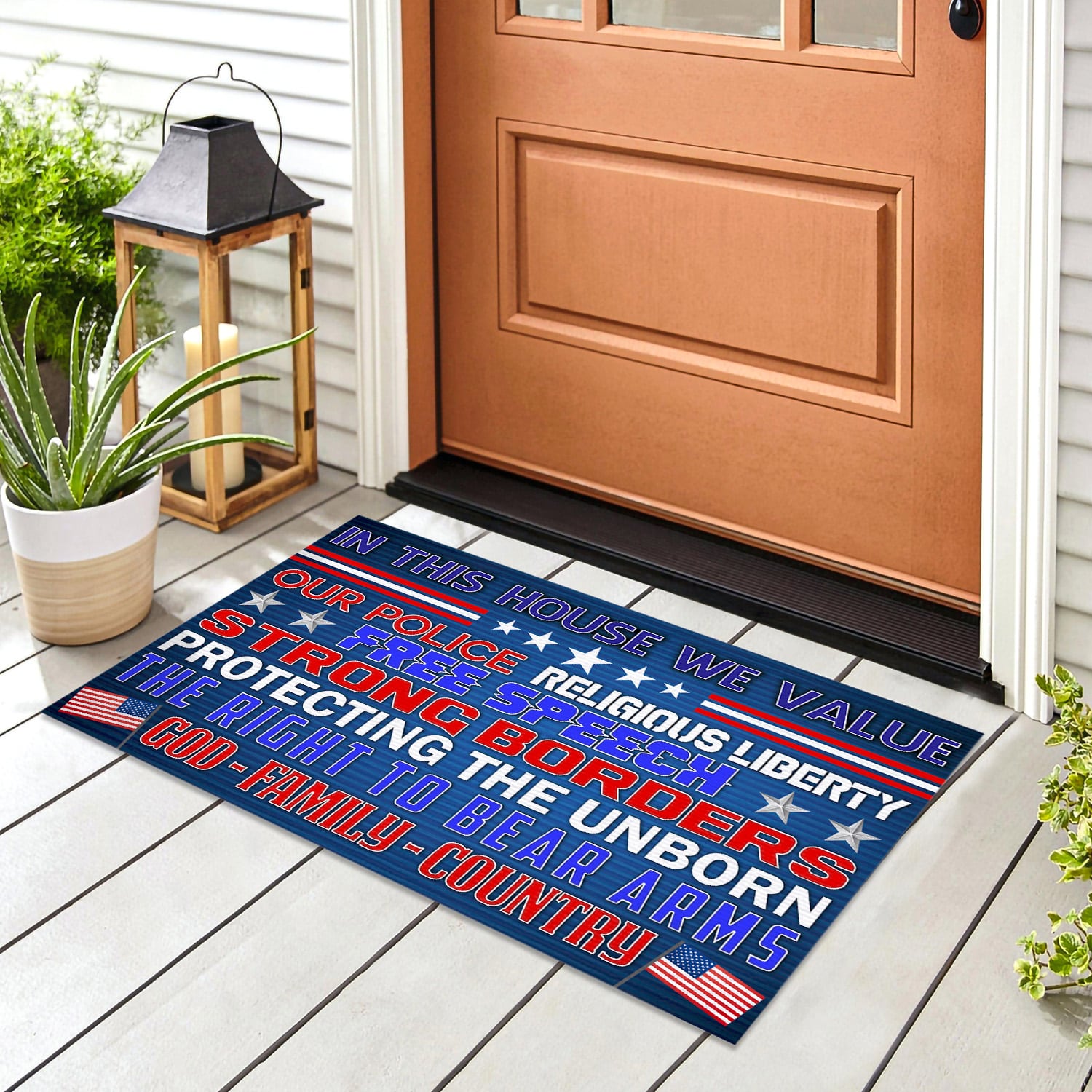 Let’s Shop In This House We Value Our Police Religious Liberty Free Speech Strong Borders Doormat-Indoor Outdoor Doormat!