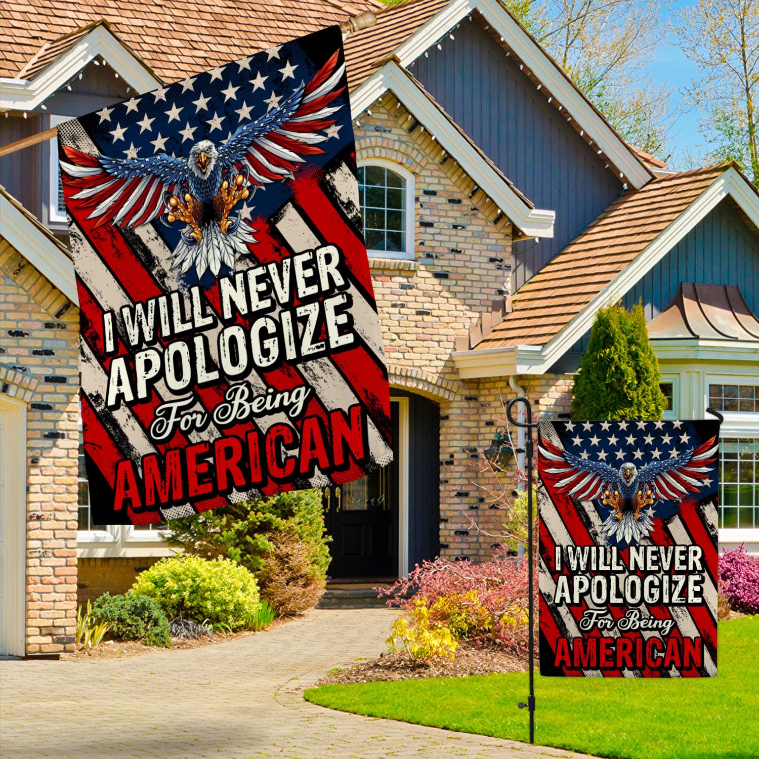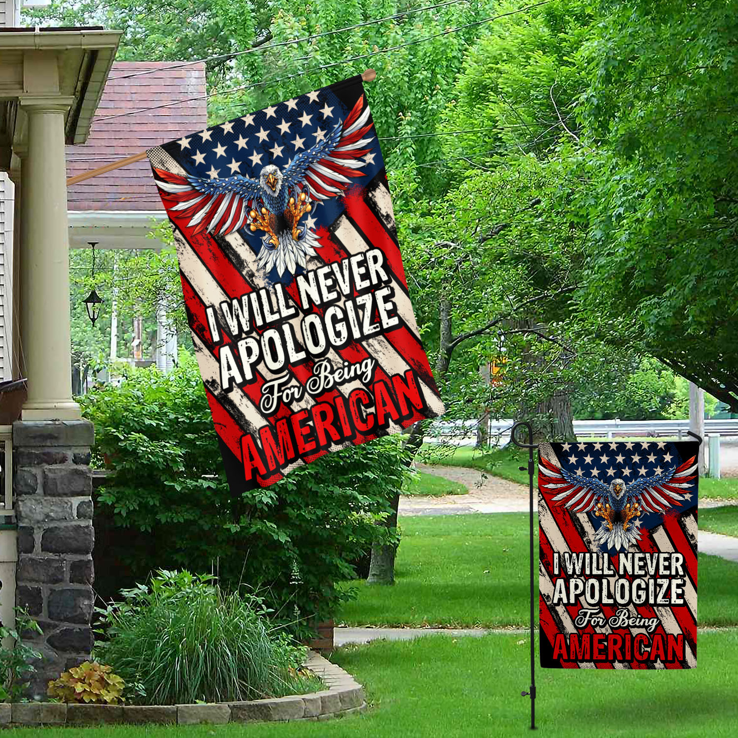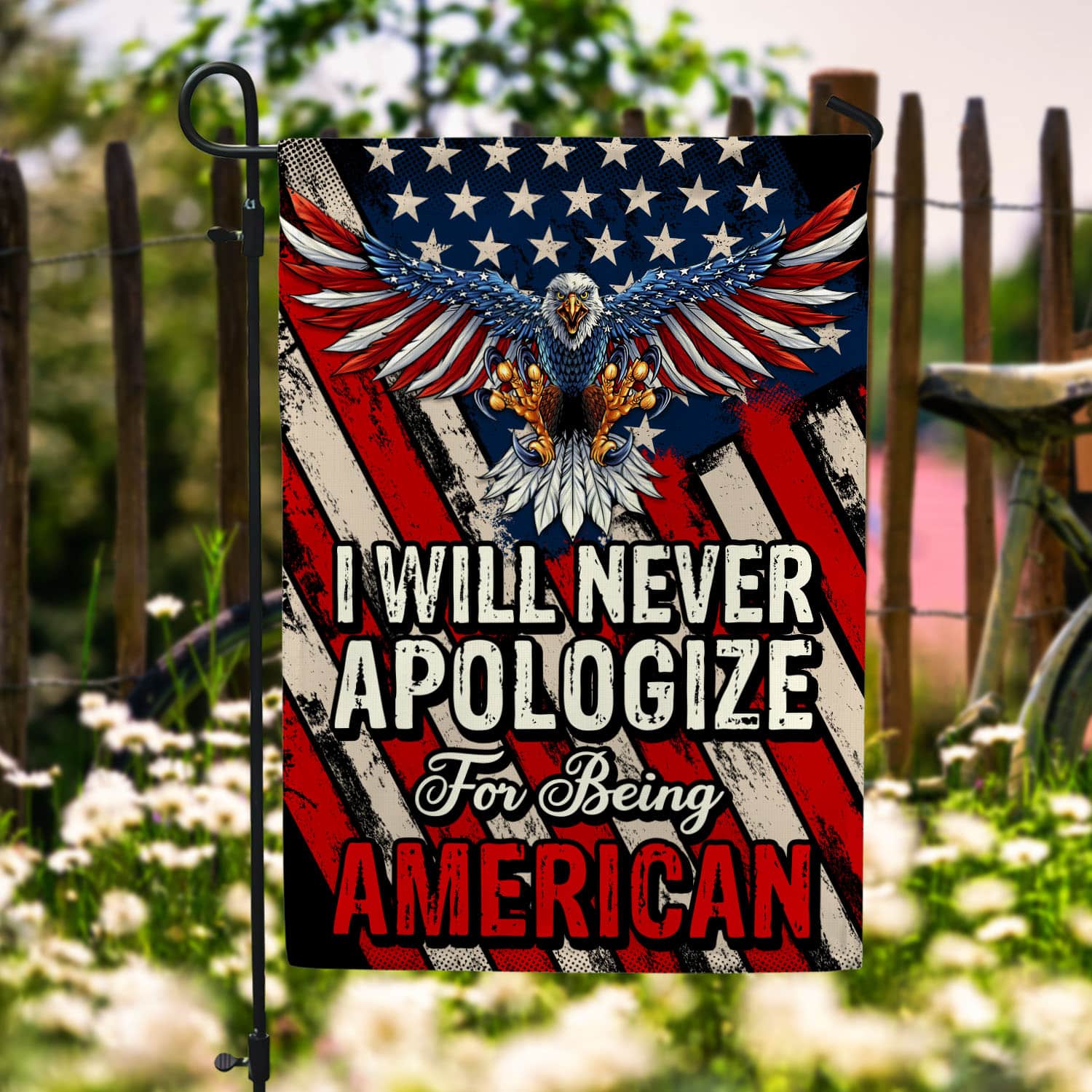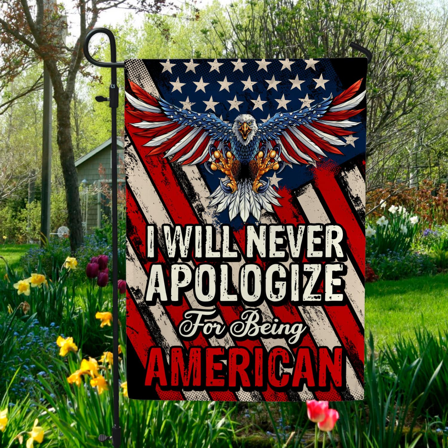 Let’s Shop I Will Never Apologize for Being American Patriot Outdoor Indoor Decorative Garden Flag – House Flag!