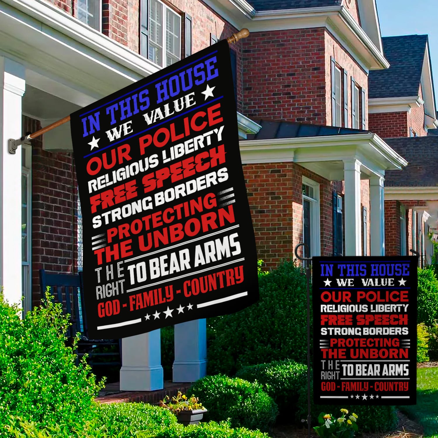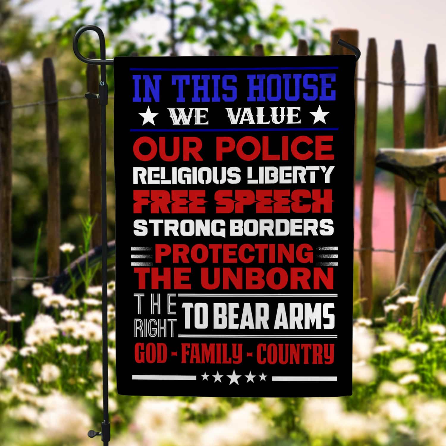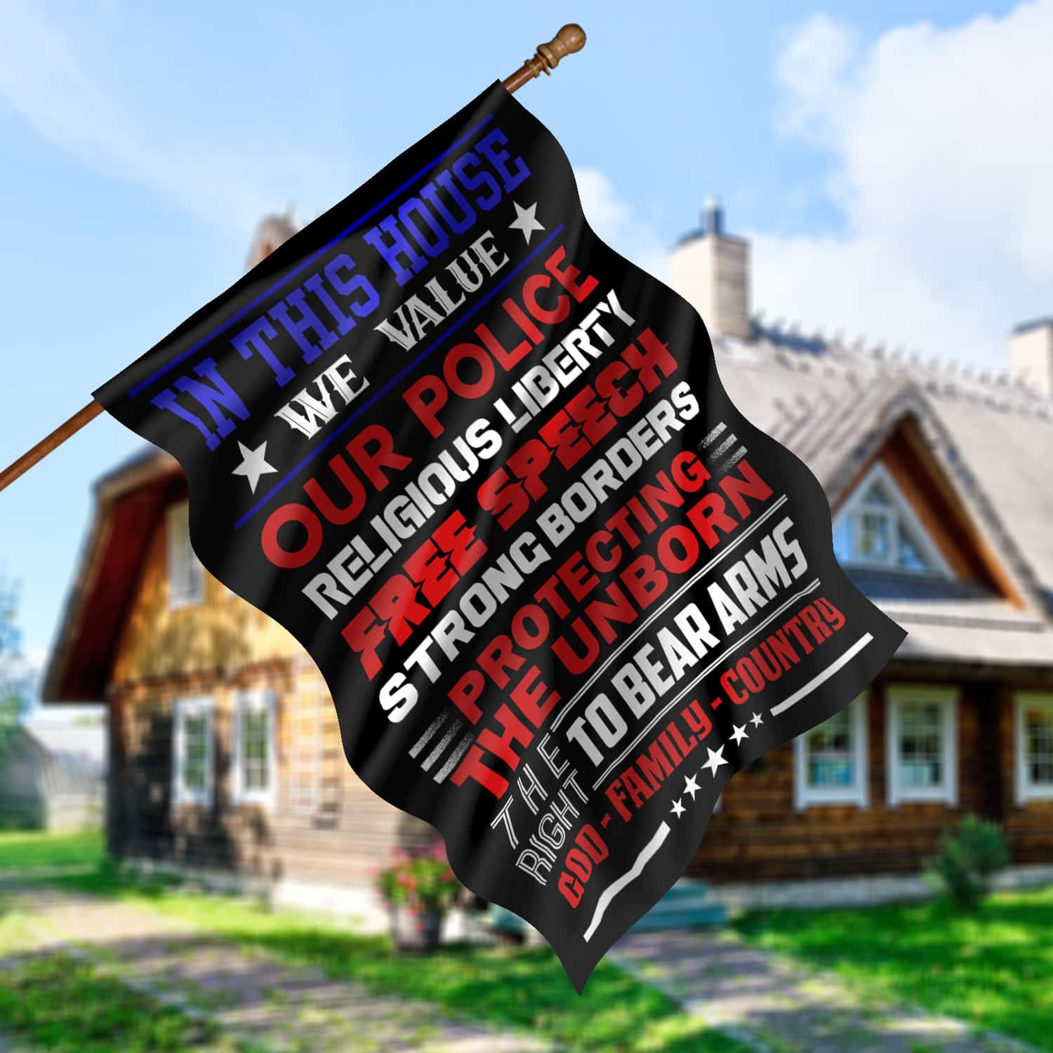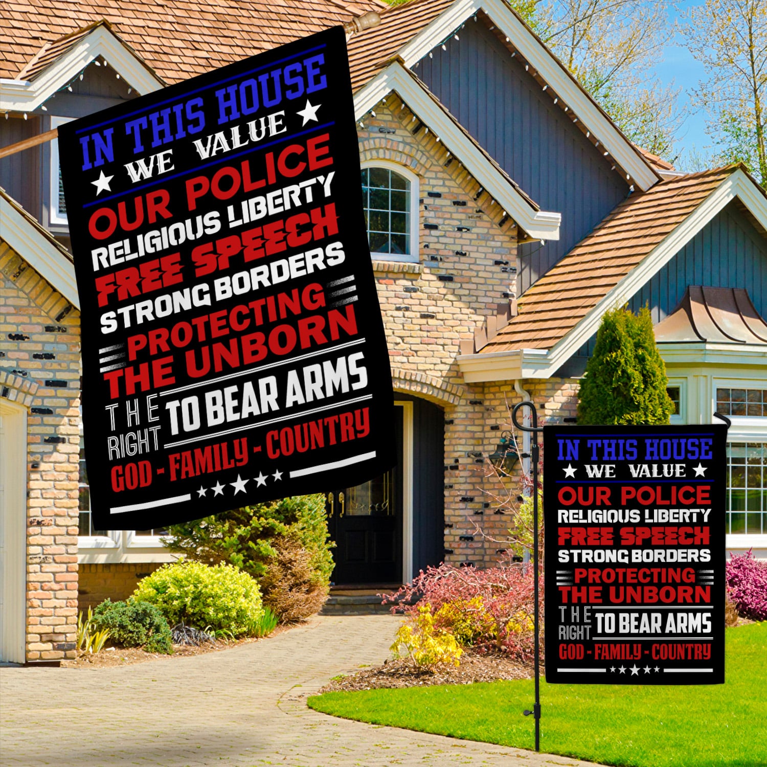 Let’s Shop In This House We Value Our Police Religious Liberty Free Speech Strong Borders Garden Flag – House Flag!