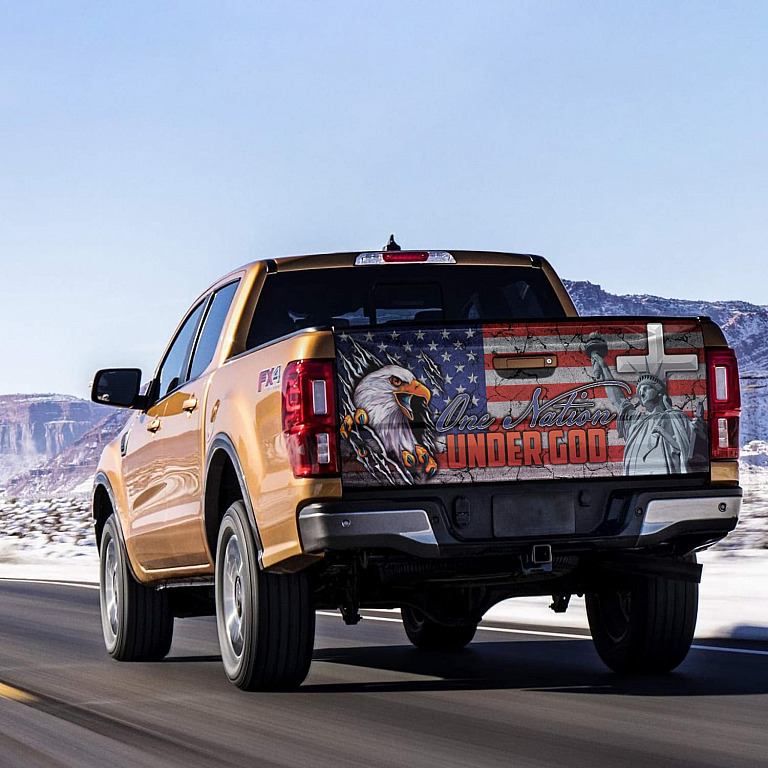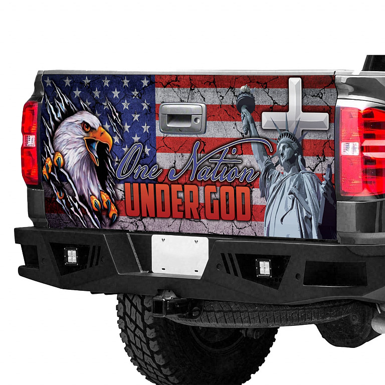 Are you spending too much time to find creative merchandise for you or suitable & special gifts for your mommy, your daddy, your son, your daughter, your children, your friends or someone you love? The struggle is over because we have various One Nation Under God Truck Tailgate, One Nation Under God Tailgate, Politics Tailgate, Patriots US Tailgate, US Patriot Tailgate, American Eagle Patriot Tailgate, US Eagle Tailgate, Christian Patriot Truck Tailgate which will make perfect presents for your beloveds. In order to make your present stand out, we have created lots of unique and awesome customized photo gifts & personalized designs.