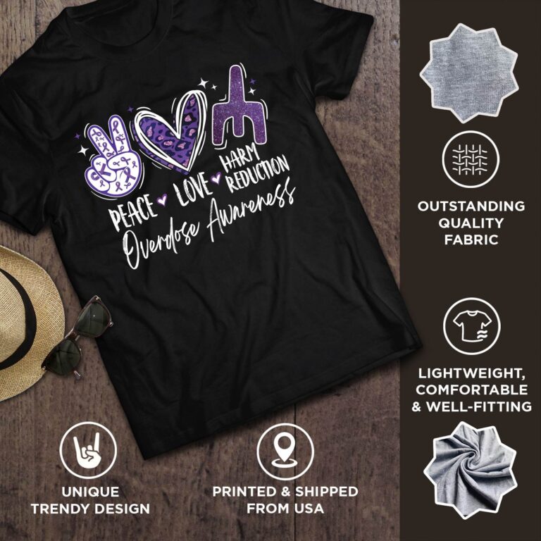 Are you spending too much time to find creative merchandise for you or suitable & special gifts for your mommy, your daddy, your son, your daughter, your children, your friends or someone you love? The struggle is over because we have various Peace Love Harm Reduction T-Shirt, Overdose Awareness Purple Ribbon Shirt, Harm Reduction Awareness Shirt, Drug Overdose Prevention Tee, Support Recovery T-Shirt, V-Neck Awareness Shirt, Purple Ribbon Youth Shirt, Kids Overdose Awareness Tee which will make perfect presents for your beloveds. In order to make your present stand out, we have created lots of unique and awesome customized photo gifts & personalized designs.