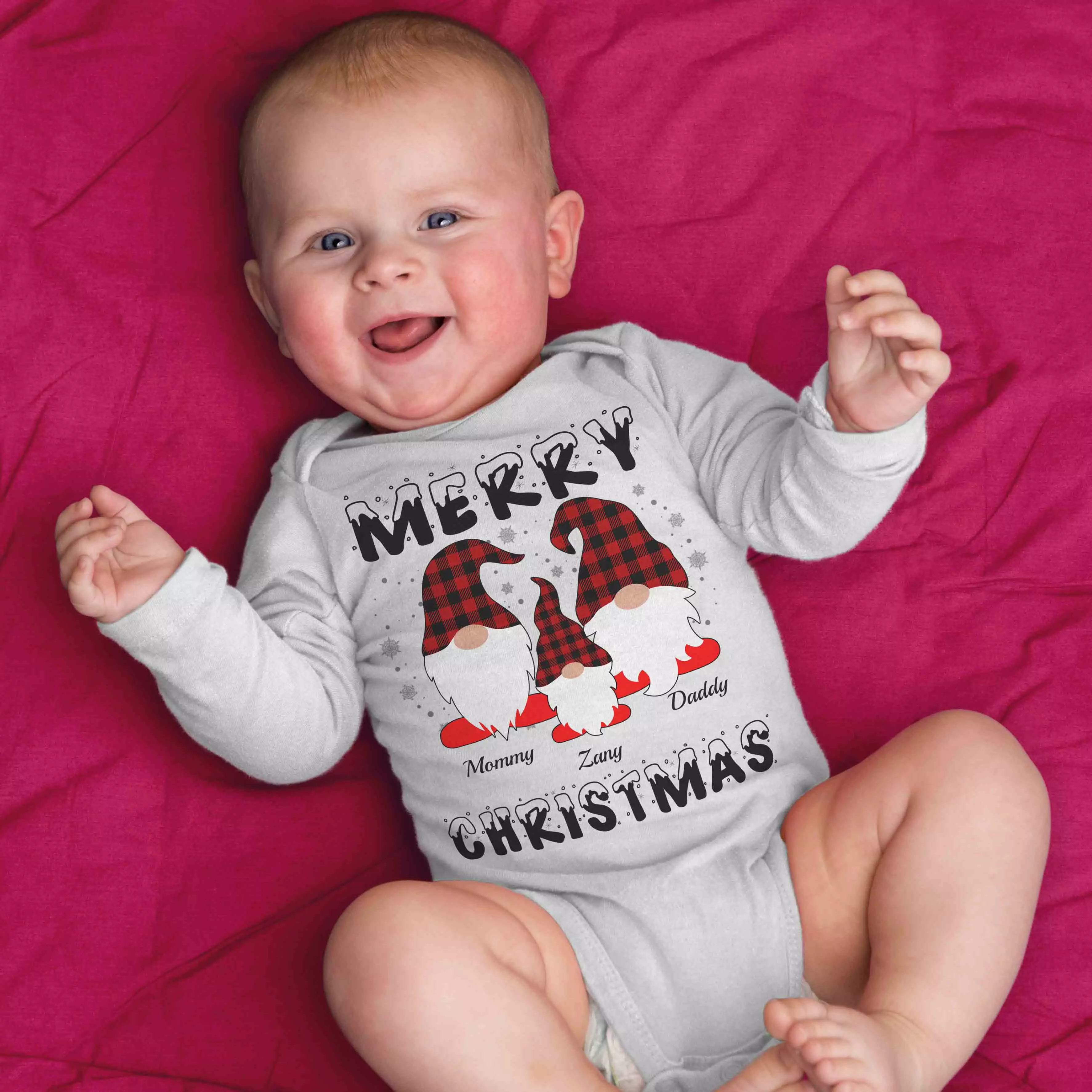 Let’s Shop Personalized Merry Christmas Gnomes Baby Onesie – Cute Gnomes Family Toddler Baby Infant Bodysuit!