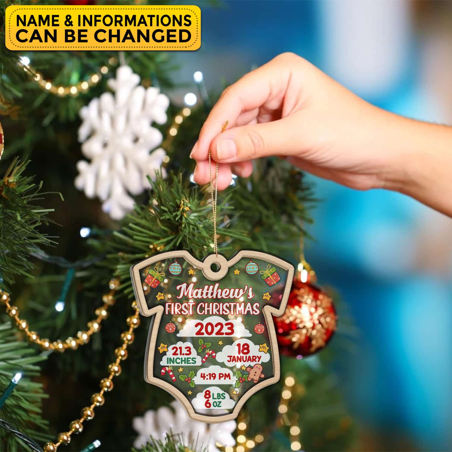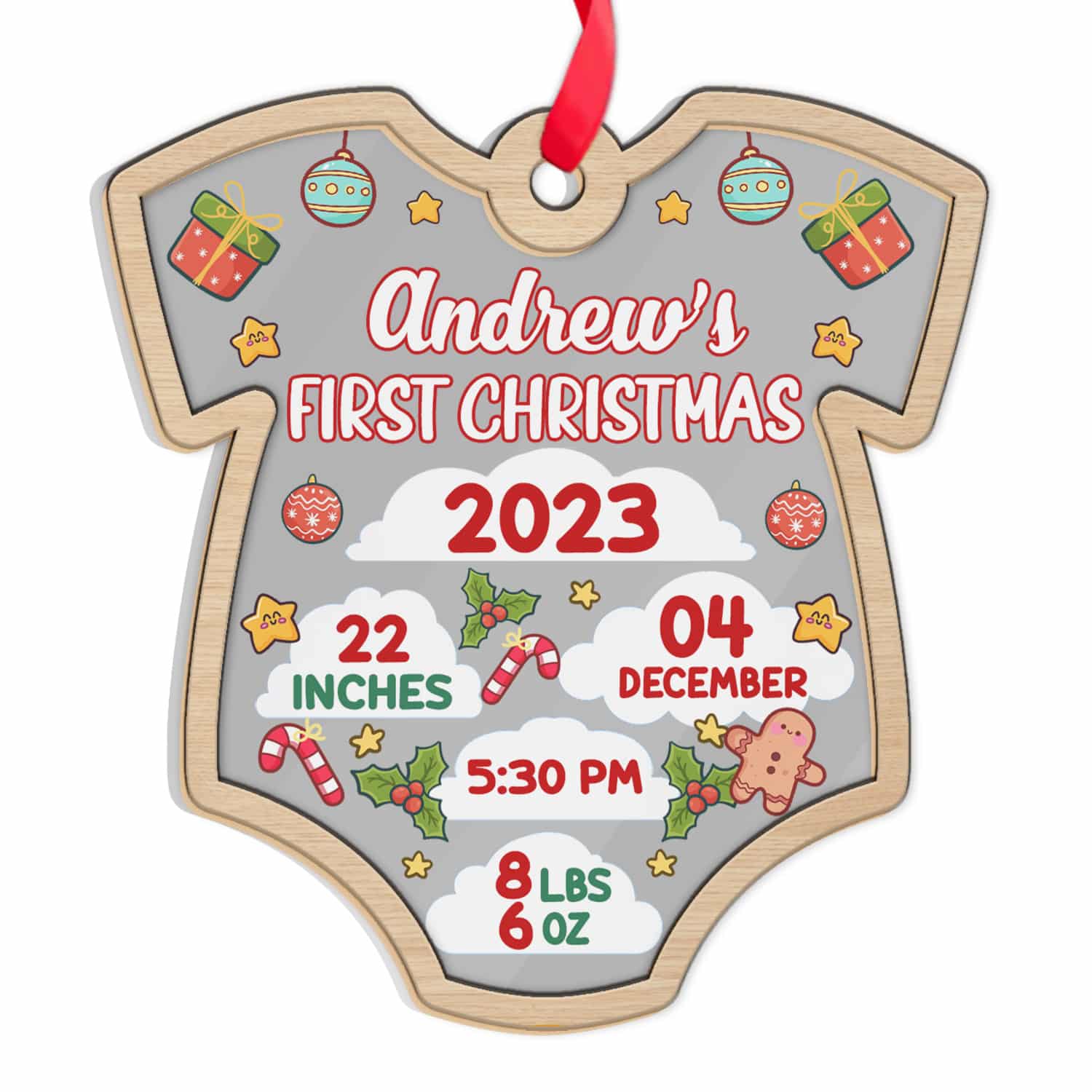 Let’s Shop Personalised Baby’s First Christmas Decoration | Christmas Bauble Gift Acrylic & Wood Ornament | Baby’s 1st Christmas Ornament!