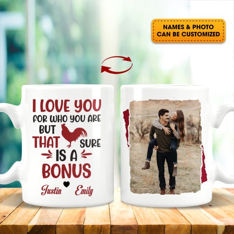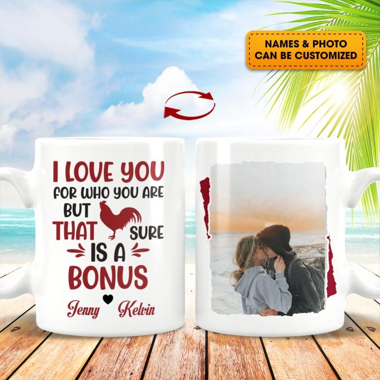 Let’s Shop Custom Photo I Love You For Who You Are But That Cock Sure Is A Bonus Funny Personalized Boyfriend Coffee Mug!