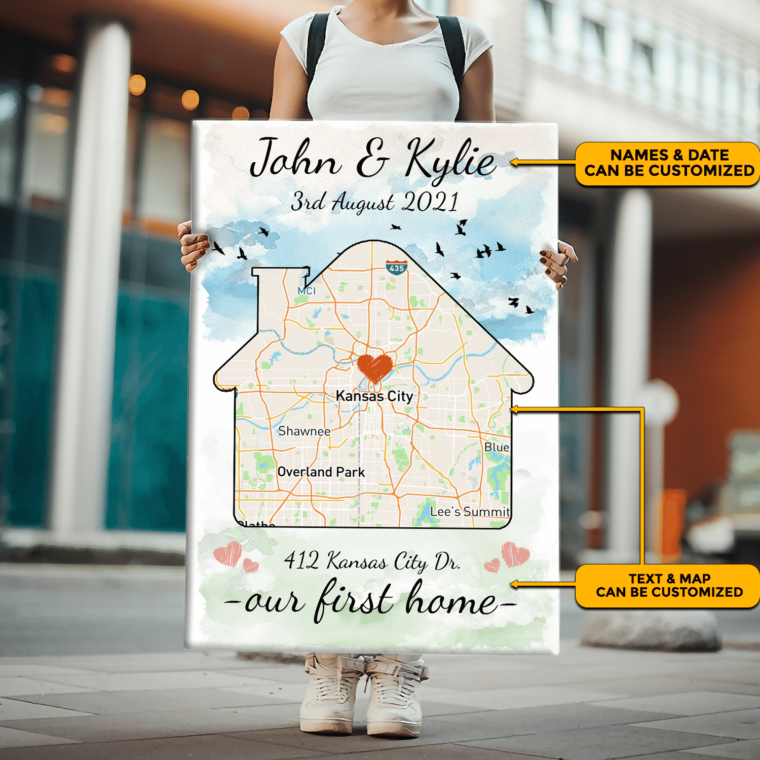 At CubeBik, besides custom canvases, we also offer tees, hoodies, sweaters, raglans, tanks, wall arts, posters, mugs, engraved jewelry, personalized necklaces, printed face masks, throw pillows, flags, tote bags, hats, accessories and more on our website, so do not miss our other New Home Gifts, House Map, First Home Gift, Personalised Street Map, Couples First House Gift, Friends New Home, Custom Map Prints, Custom Street Signrelated merchandise. Moreover, all the products are made-to-order and one of a kind custom designs you can’t get elsewhere in normal stores. Let’s discover CubeBik.com now and find your favorite personalized items. We can’t wait to surprise and build beautiful memories with you and your loved ones.