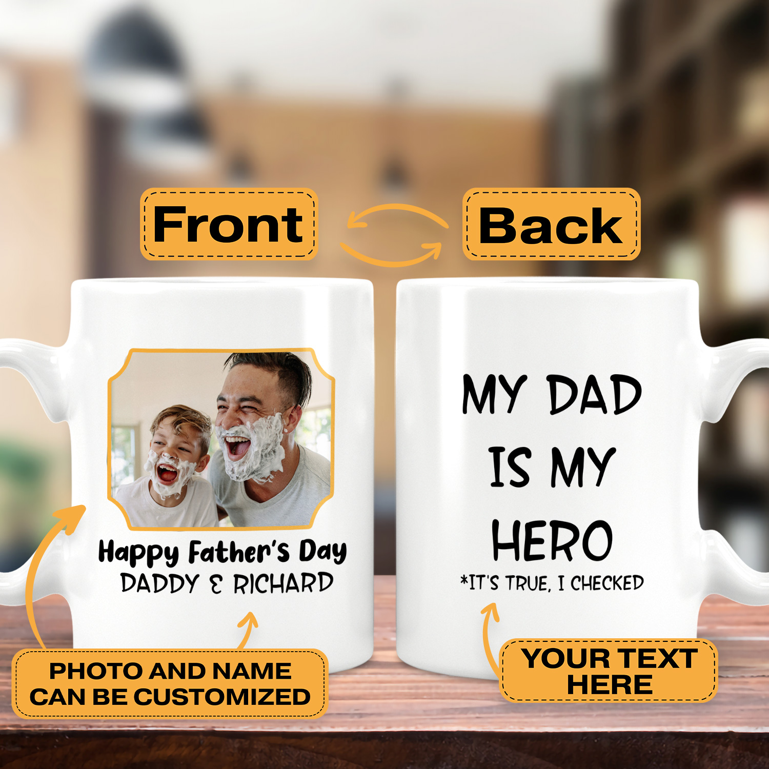 Are you spending too much time to find creative merchandise for you or suitable & special gifts for your mommy, your daddy, your son, your daughter, your children, your friends or someone you love? The struggle is over because we have various Fathers Day Photo Mug, Father’s Day Picture Mug, Fathers Day Mug with Photo, Best Dad Photo Mug, Dad Mug with Picture, Picture Mugs Fathers Day, Personalized Father’s Day Mug, Personalised Fathers Day Mug, Personalised Dad Mug, which will make perfect presents for your beloveds. In order to make your present stand out, we have created lots of unique and awesome customized photo gifts & personalized designs.