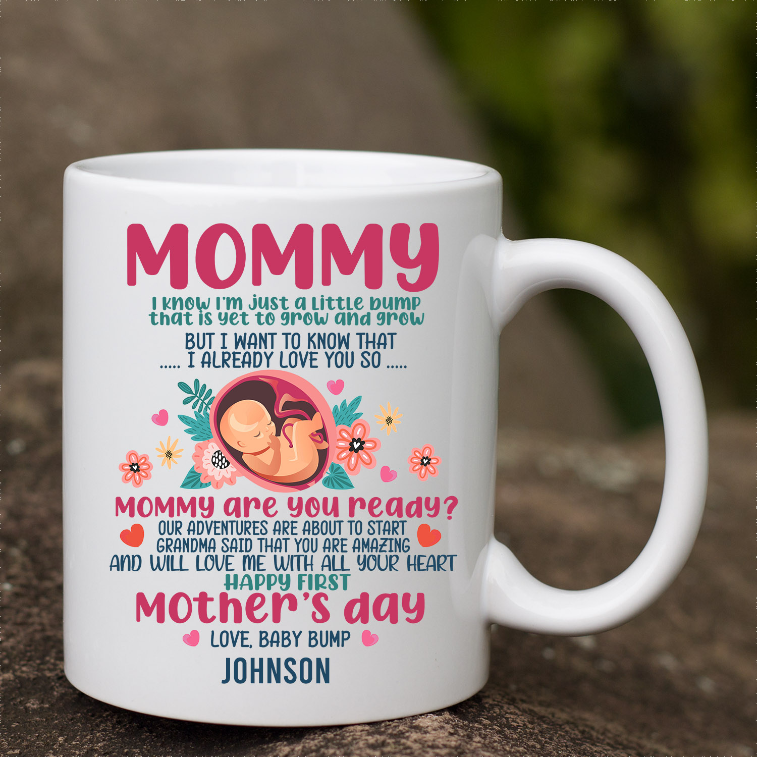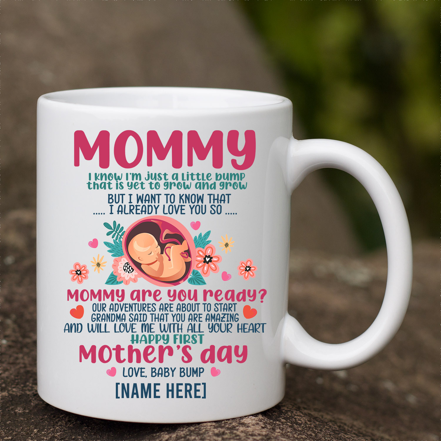 Let’s Shop Personalized Mommy I Know I’m Just a Little Bump Happy Coffee Mug – 1st Mother’s Day Travel Bottle!