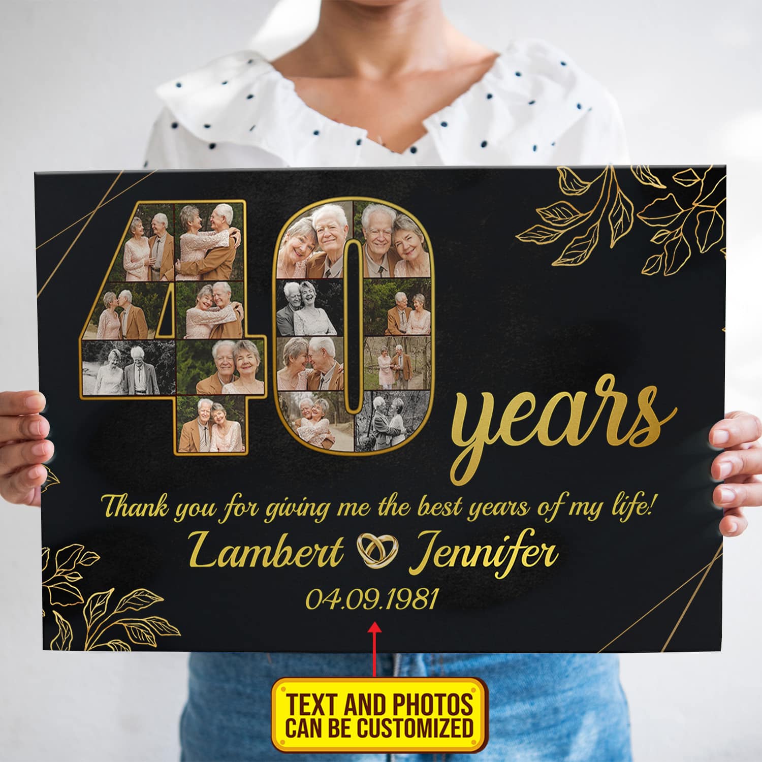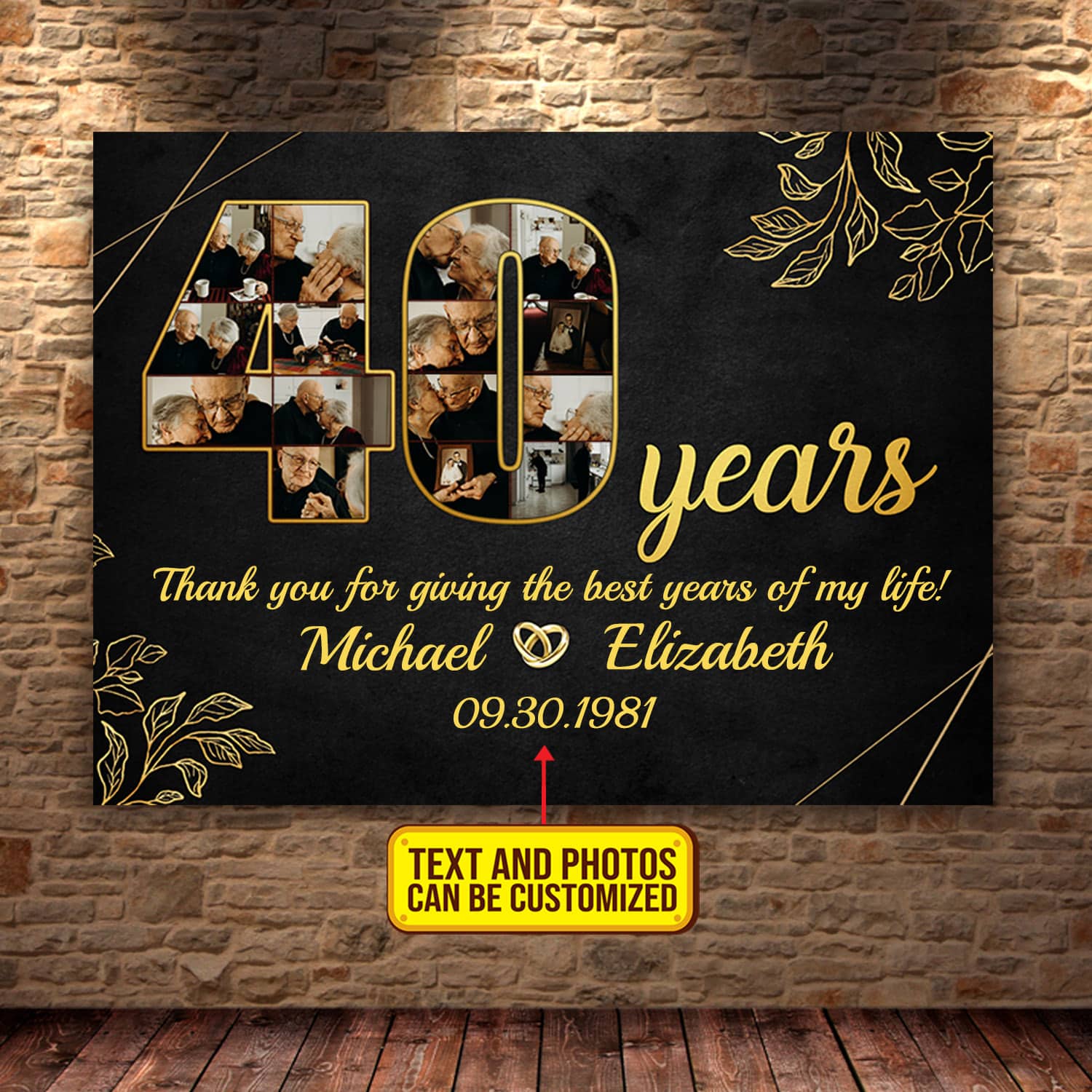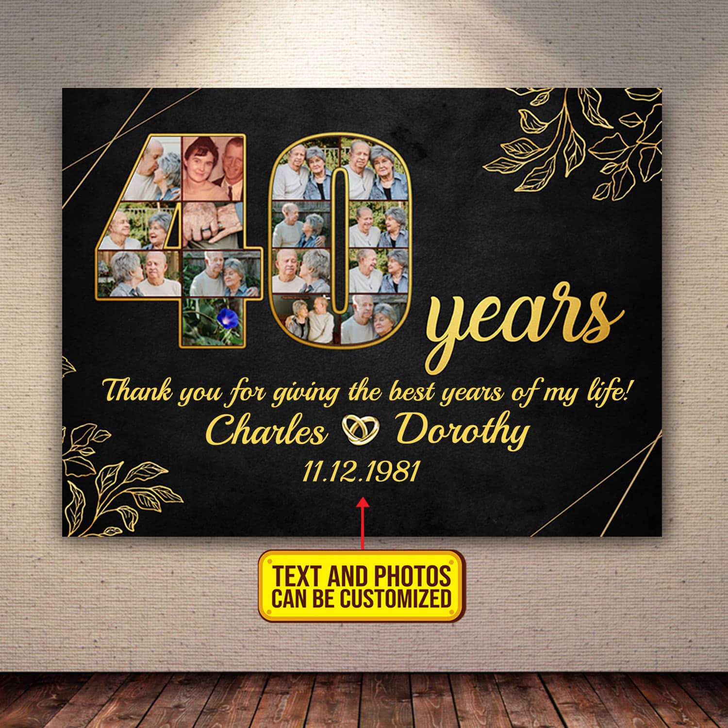Are you spending too much time to find creative merchandise for you or suitable & special gifts for your mommy, your daddy, your son, your daughter, your children, your friends or someone you love? The struggle is over because we have various 40th Anniversary Tin Gifts, 40th Anniversary Personalized Gifts, Couple Custom Canvas 40 Years Anniversary, Personalized Wedding Canvas, Personalized Anniversary Poster, Thank You for Giving Me the Best Years Canvas, 40 Years Couple Poster which will make perfect presents for your beloveds. In order to make your present stand out, we have created lots of unique and awesome customized photo gifts & personalized designs.