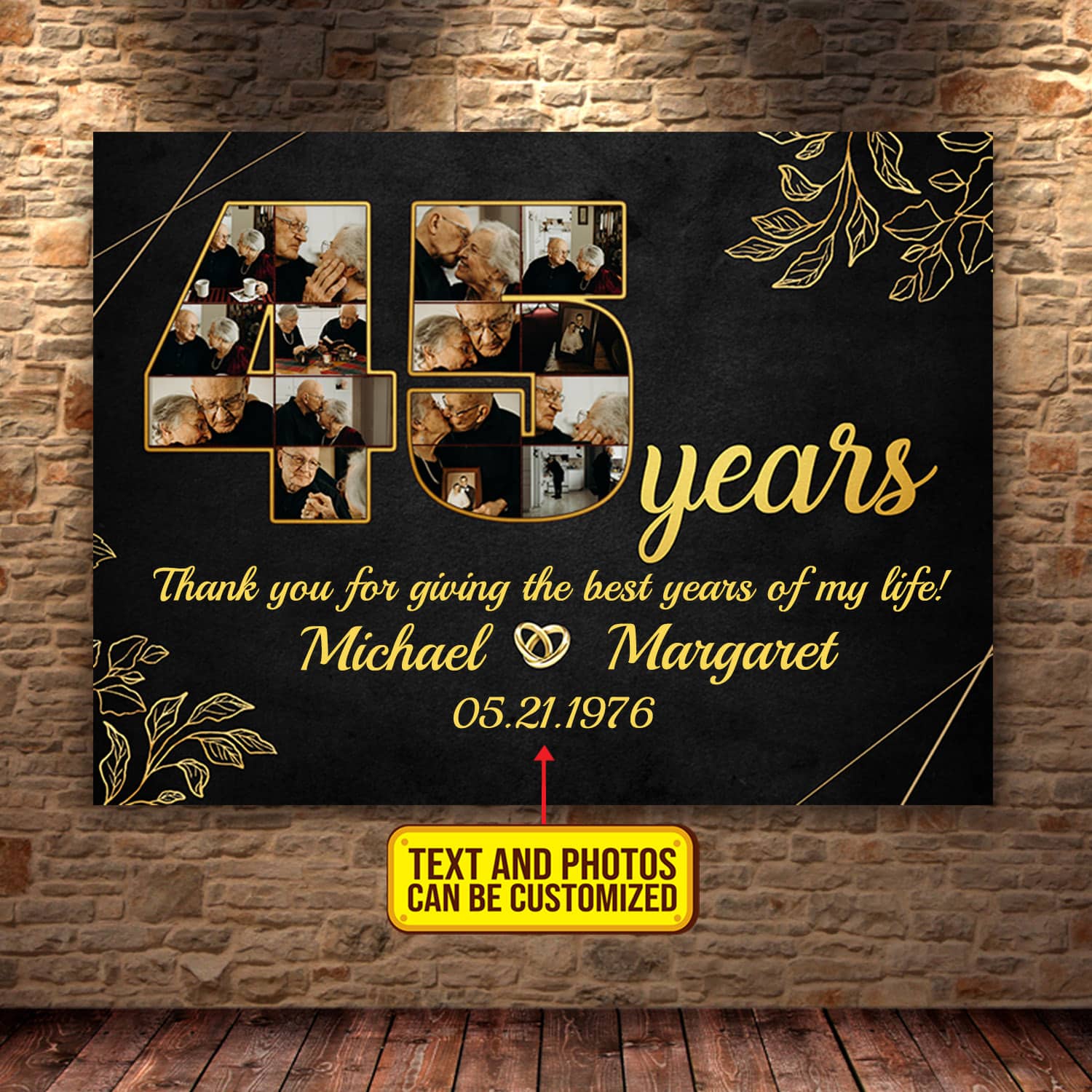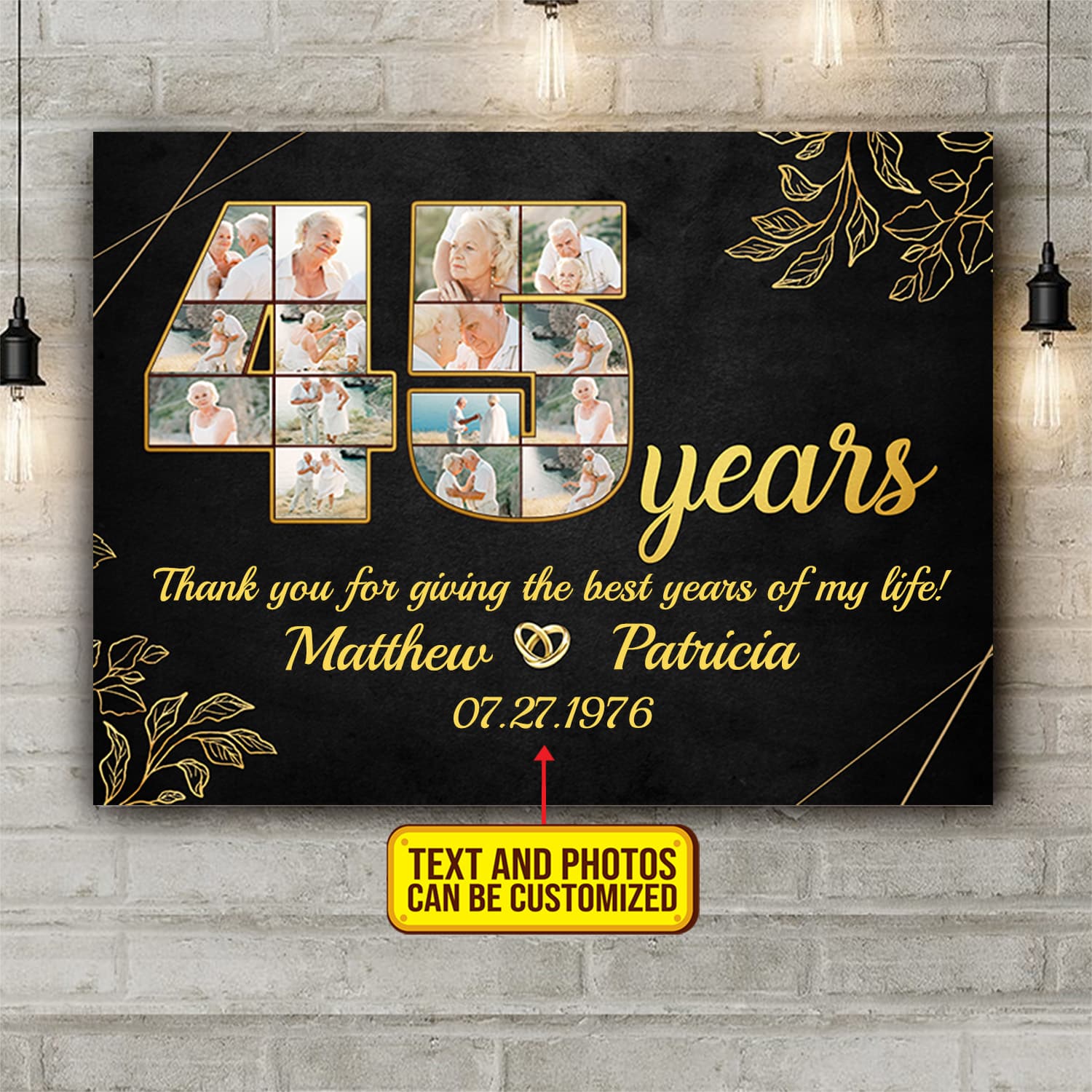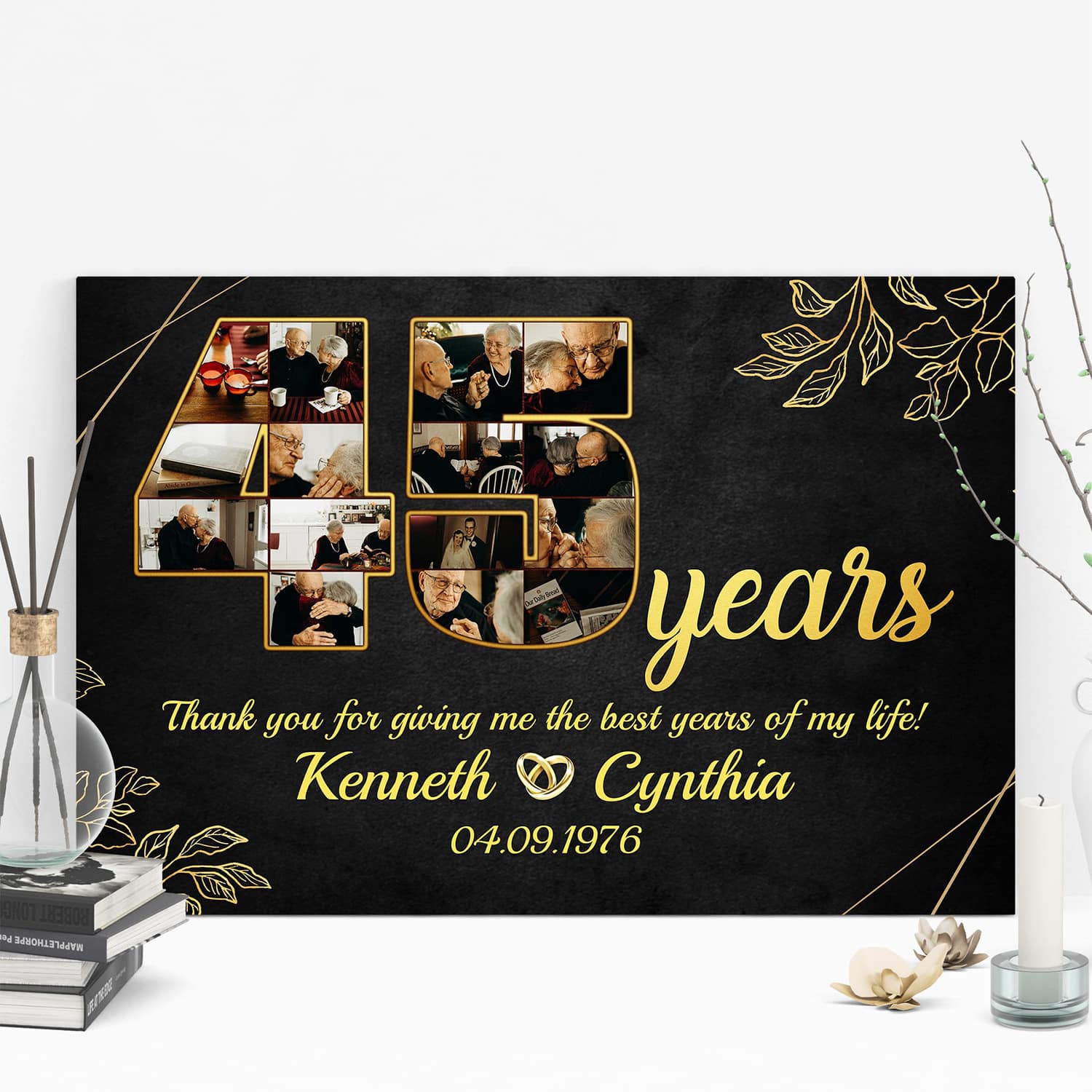 Are you spending too much time to find creative merchandise for you or suitable & special gifts for your mommy, your daddy, your son, your daughter, your children, your friends or someone you love? The struggle is over because we have various 45th Anniversary Tin Gifts, 45th Anniversary Personalized Gifts, Couple Custom Canvas 45 Years Anniversary, Personalized Wedding Canvas, Personalized Anniversary Poster, Thank You for Giving Me the Best Years Canvas, 45 Years Couple Poster which will make perfect presents for your beloveds. In order to make your present stand out, we have created lots of unique and awesome customized photo gifts & personalized designs.