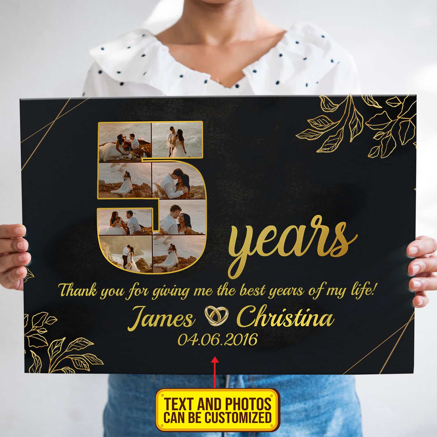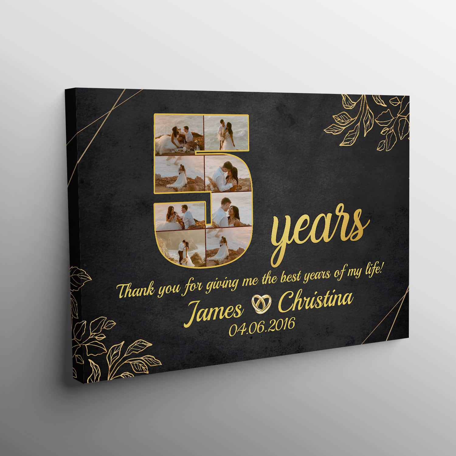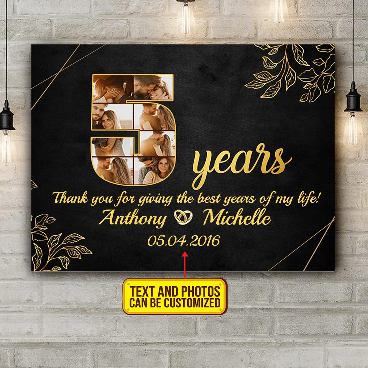 Are you spending too much time to find creative merchandise for you or suitable & special gifts for your mommy, your daddy, your son, your daughter, your children, your friends or someone you love? The struggle is over because we have various 5th Anniversary Tin Gifts, 5th Anniversary Personalized Gifts, Couple Custom Canvas 5 Years Anniversary, Personalized Wedding Canvas, Personalized Anniversary Poster, Thank You for Giving Me the Best Years Canvas, 5 Years Couple Poster which will make perfect presents for your beloveds. In order to make your present stand out, we have created lots of unique and awesome customized photo gifts & personalized designs.