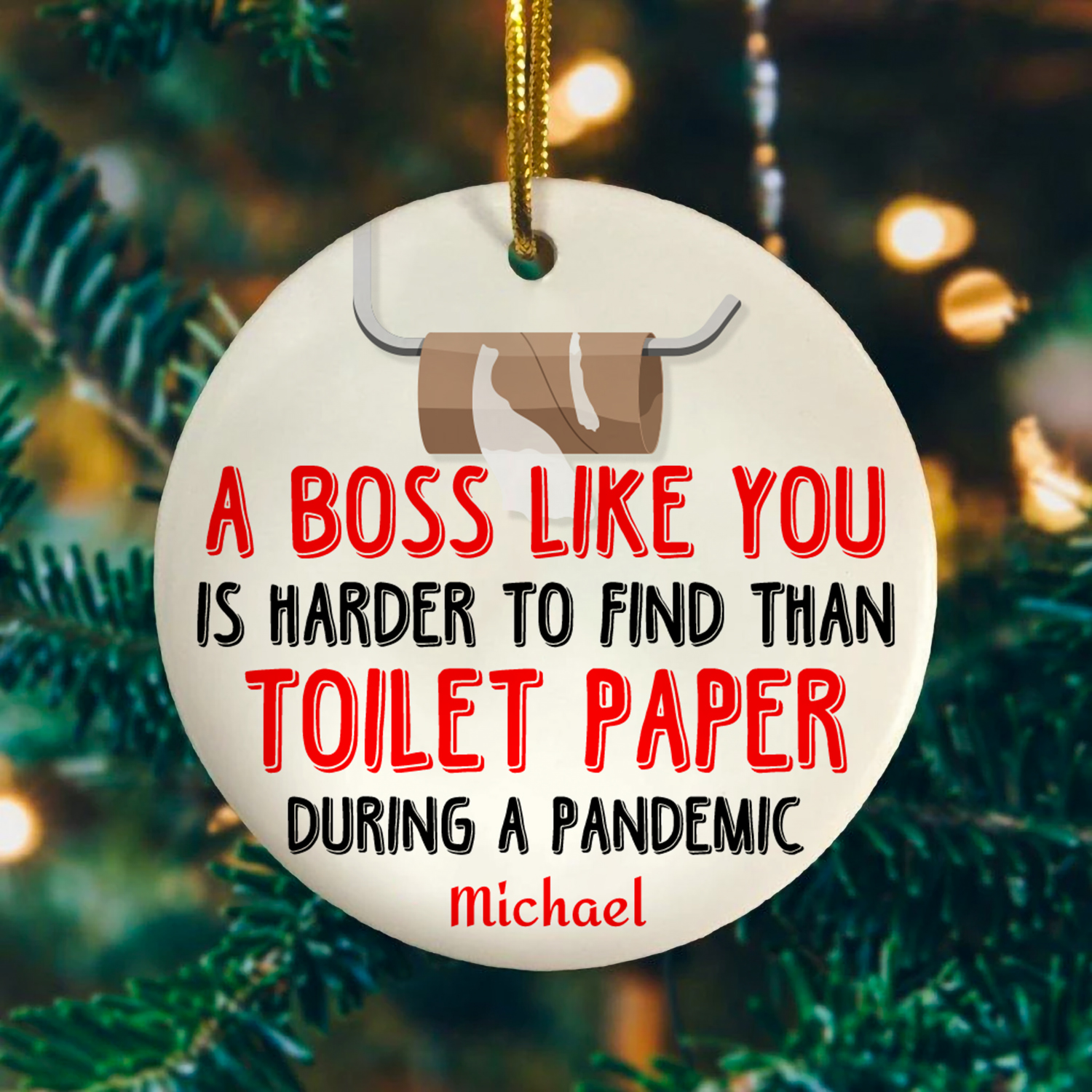 Let’s Shop Personalized A Boss Like You Is Harder To Find Than Toilet Paper During A Pandemic Circle Christmas Ornament!