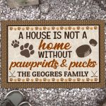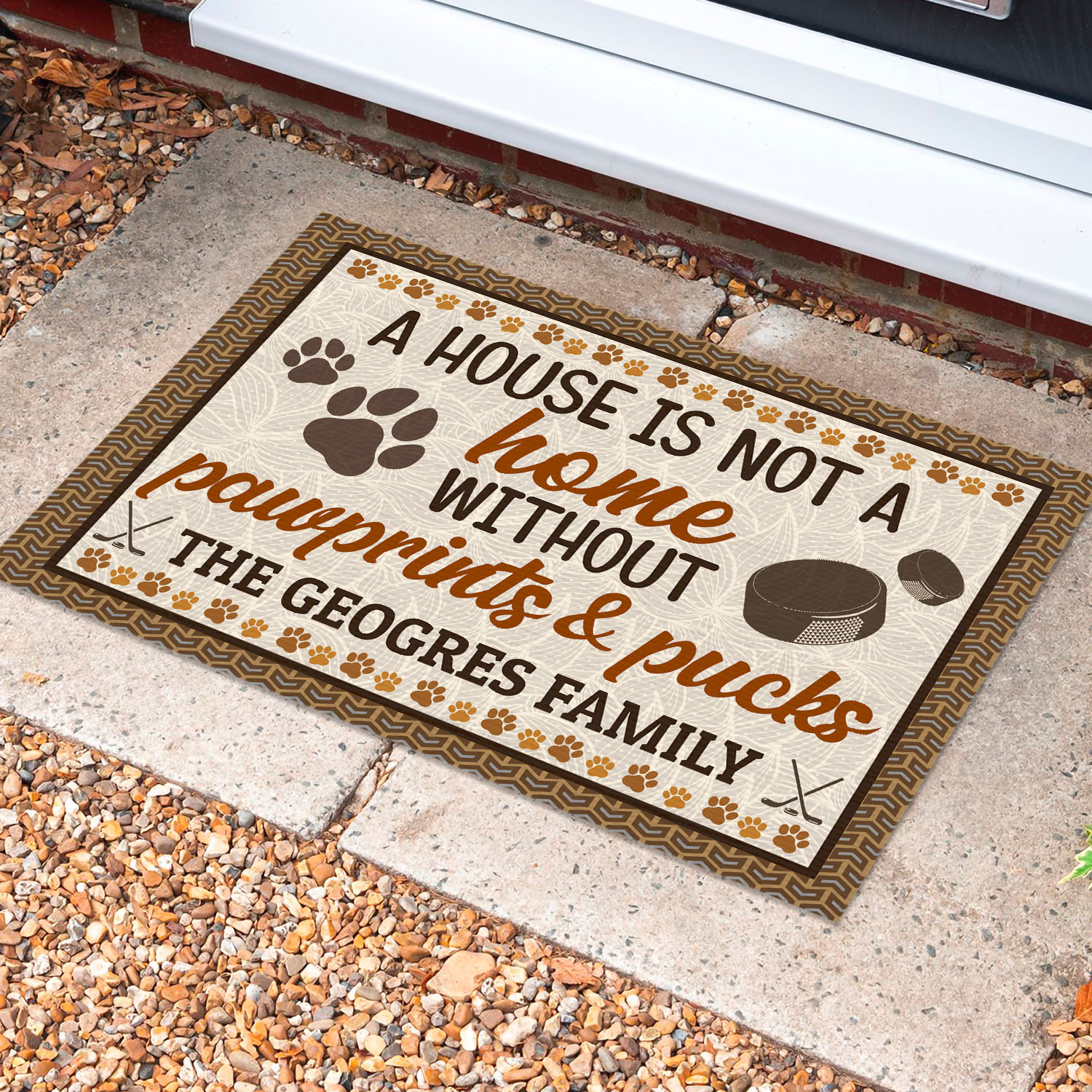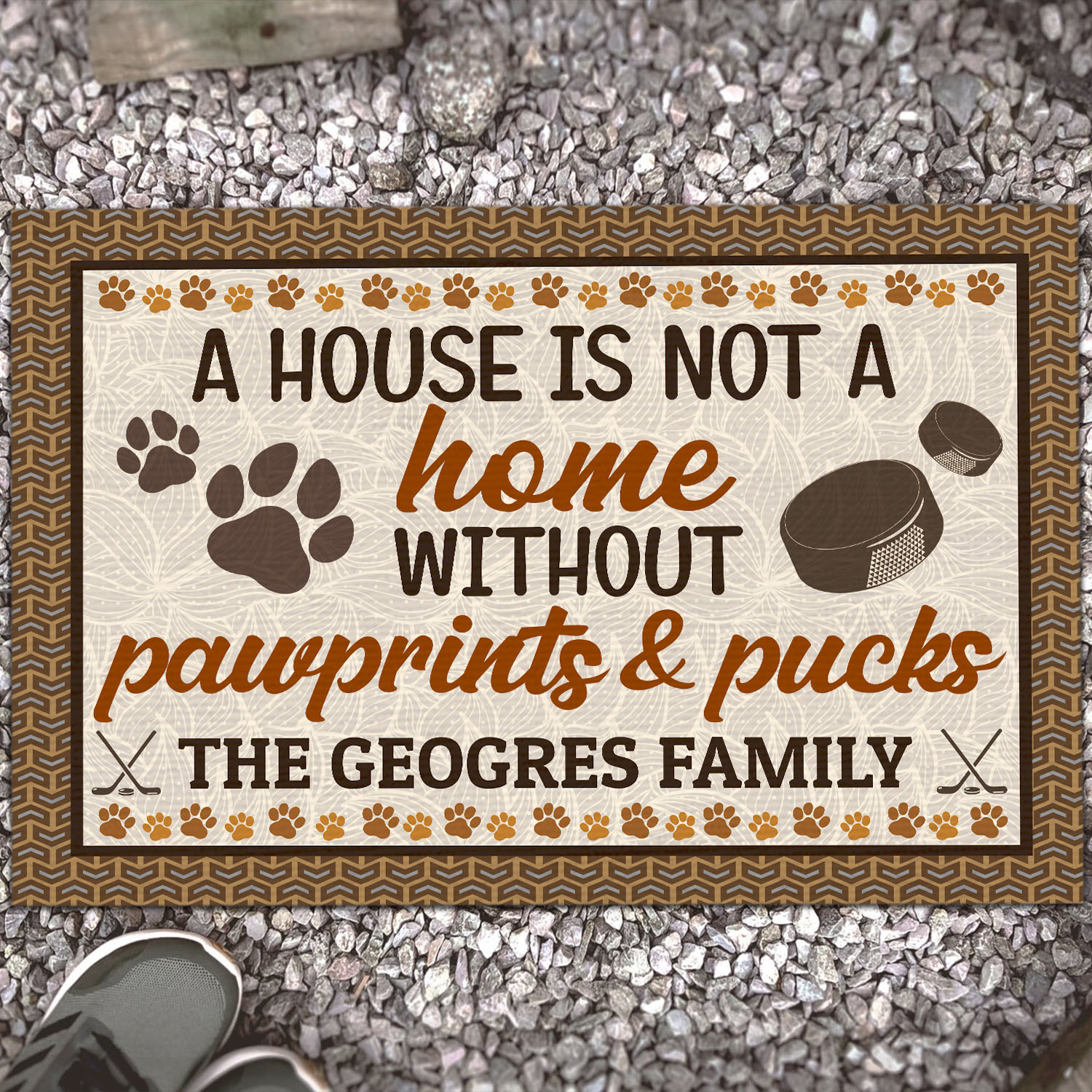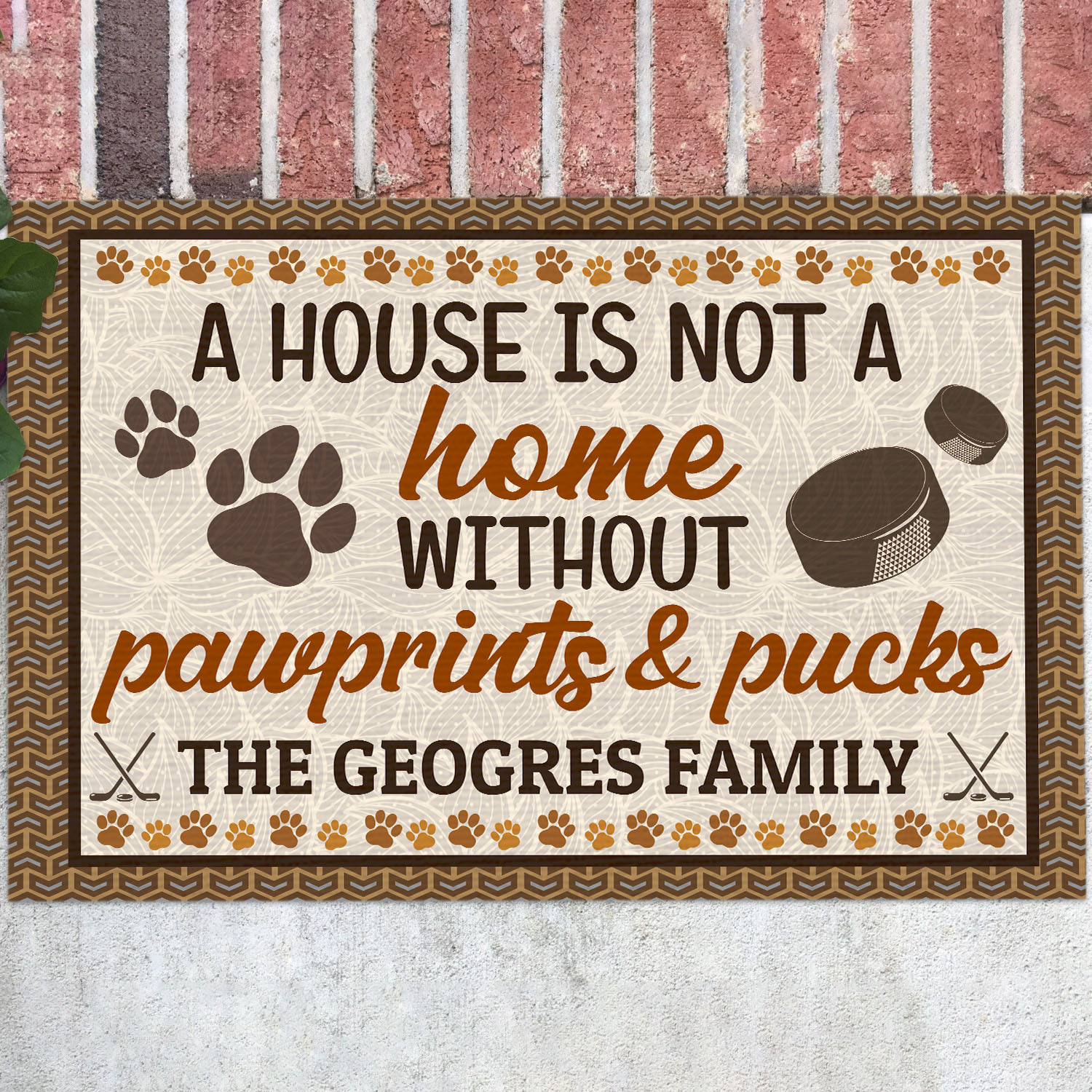 Let’s Shop Personalized A House Is Not A Home Without Pawprints And Pucks House Doormat – Outdoor Indoor Doormat!