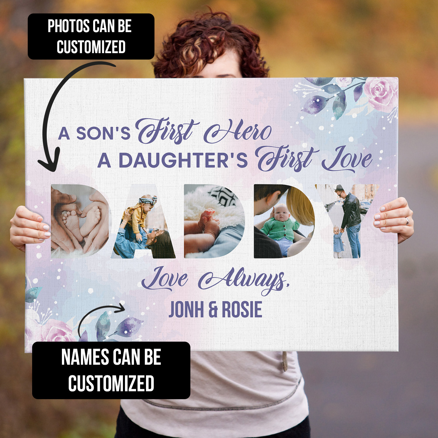 Let’s Shop Personalized Photo A Son’s First Hero A Daughter’s First Love Framed Canvas Prints-Unframed Poster-Wall Art!