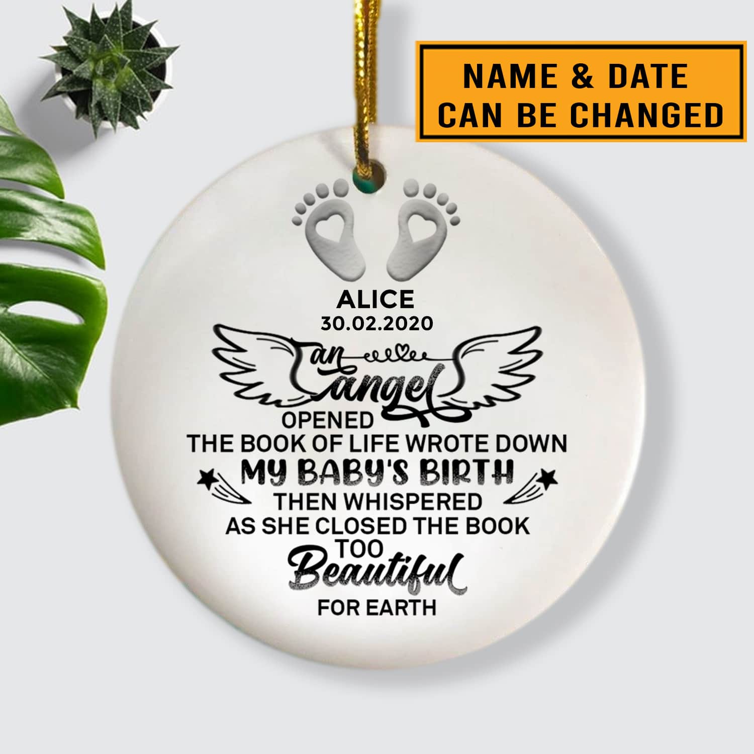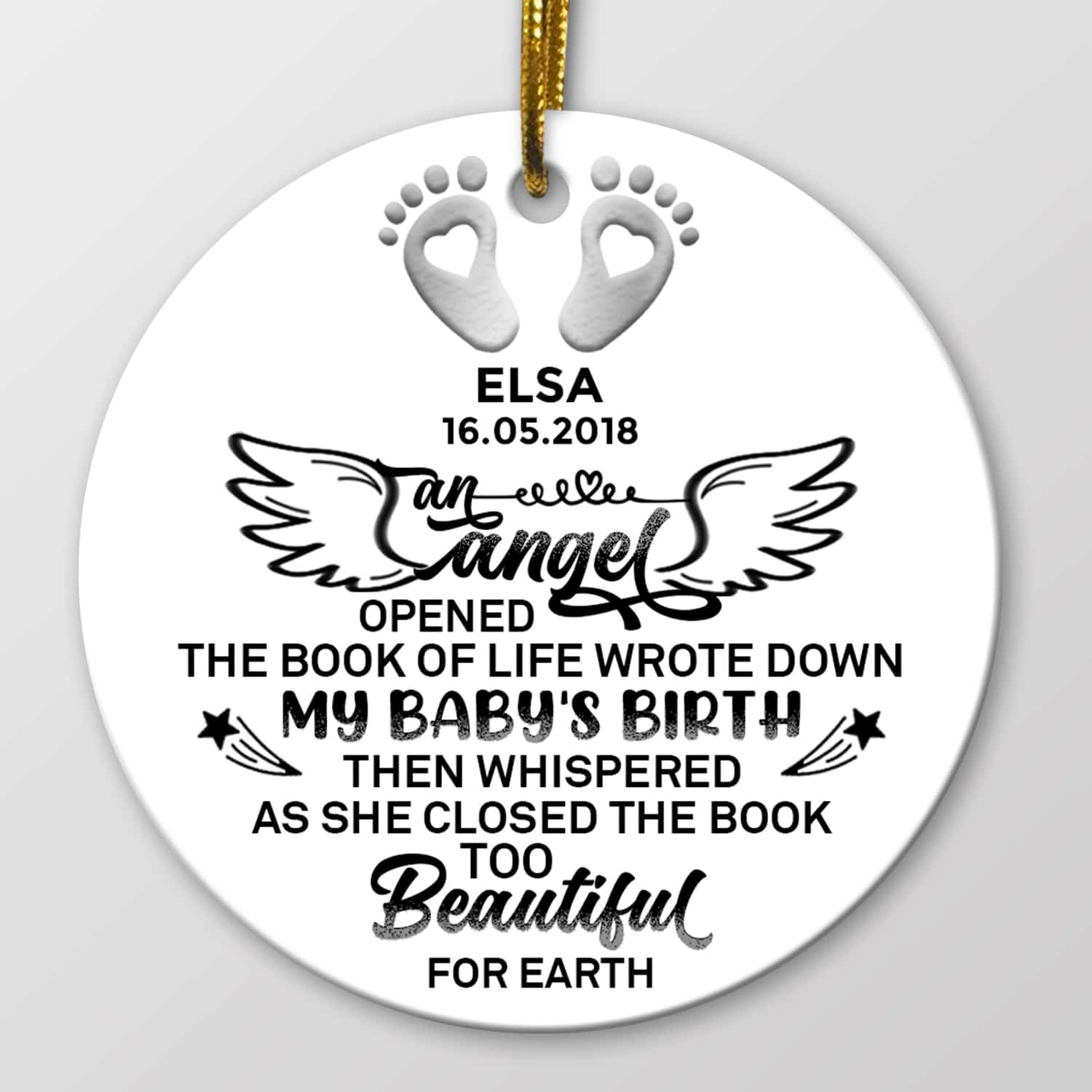 Let’s Shop Personalized An Angel Opened The Book Of Life Baby Angel In Heaven Circle Ornament – Baby Miscarriage Ornament!