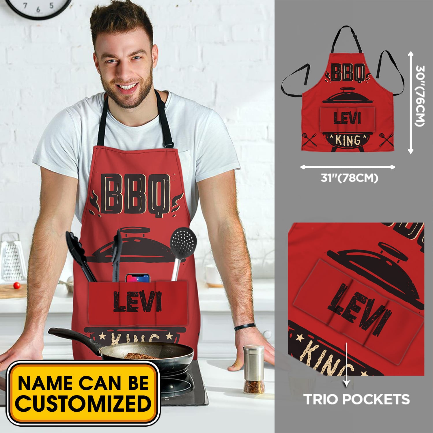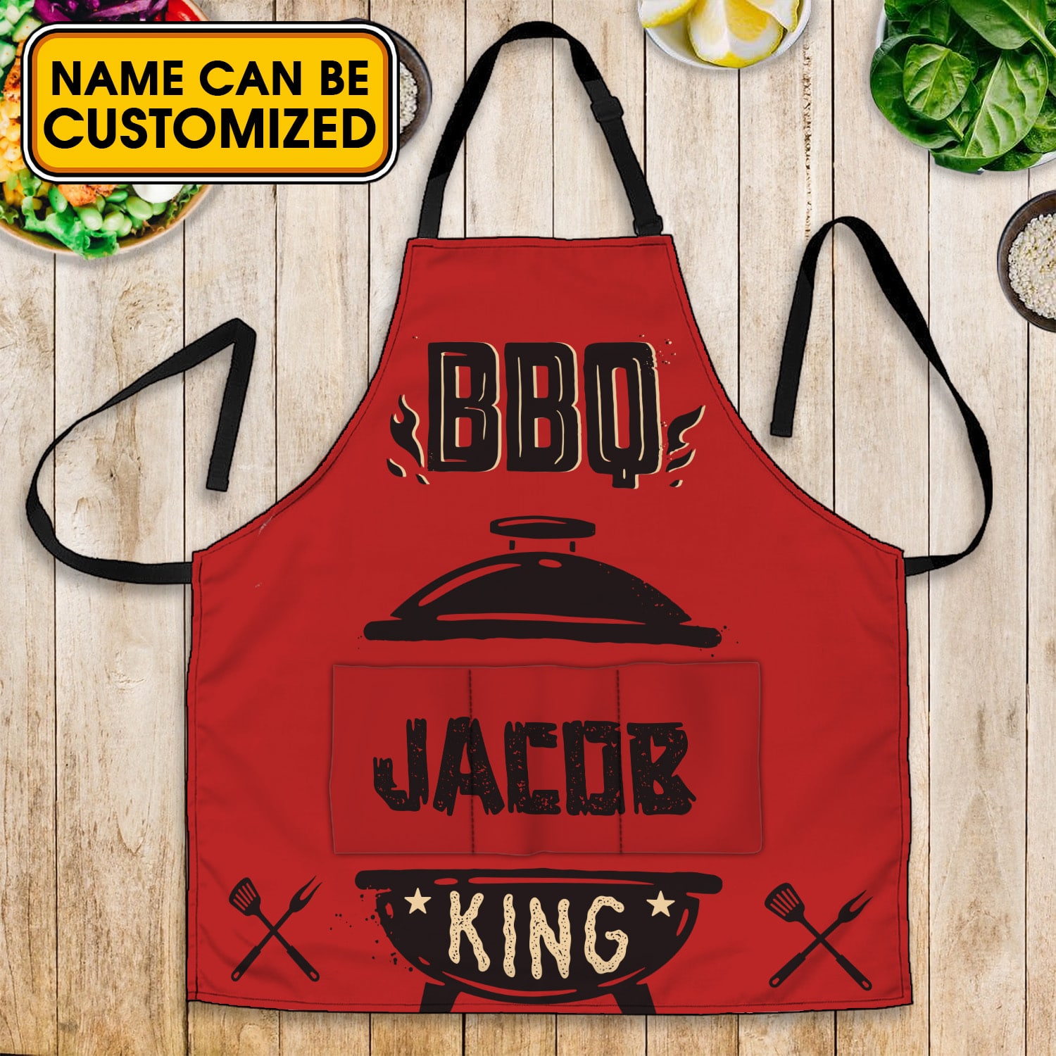 Let’s Shop Personalized Aprons For Dad Gifts BBQ King Funny Cooking Apron With Three Pockets – Adjustable Neck Strap Fits All Sizes!
