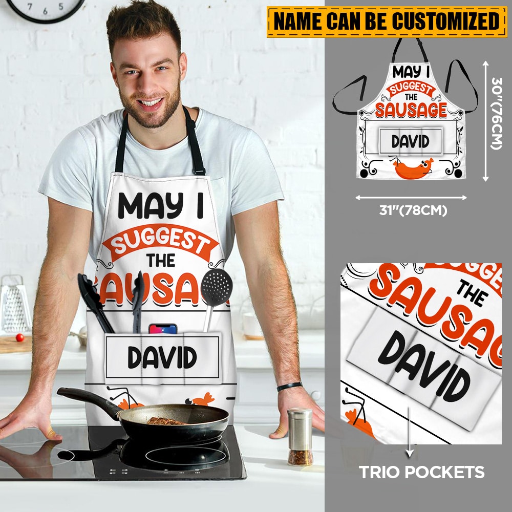 Let’s Shop Personalized Aprons For Dad Gifts May I Suggest The Sausage Funny Cooking Apron With Three Pockets – Adjustable Neck Strap!