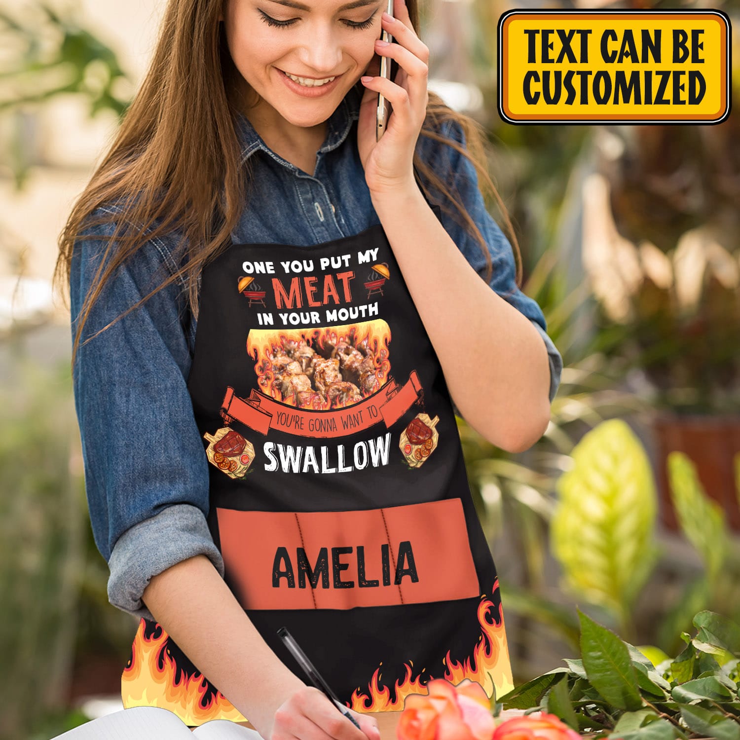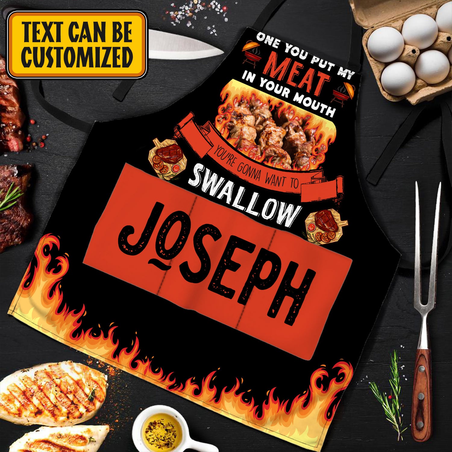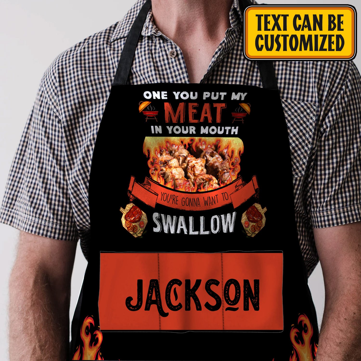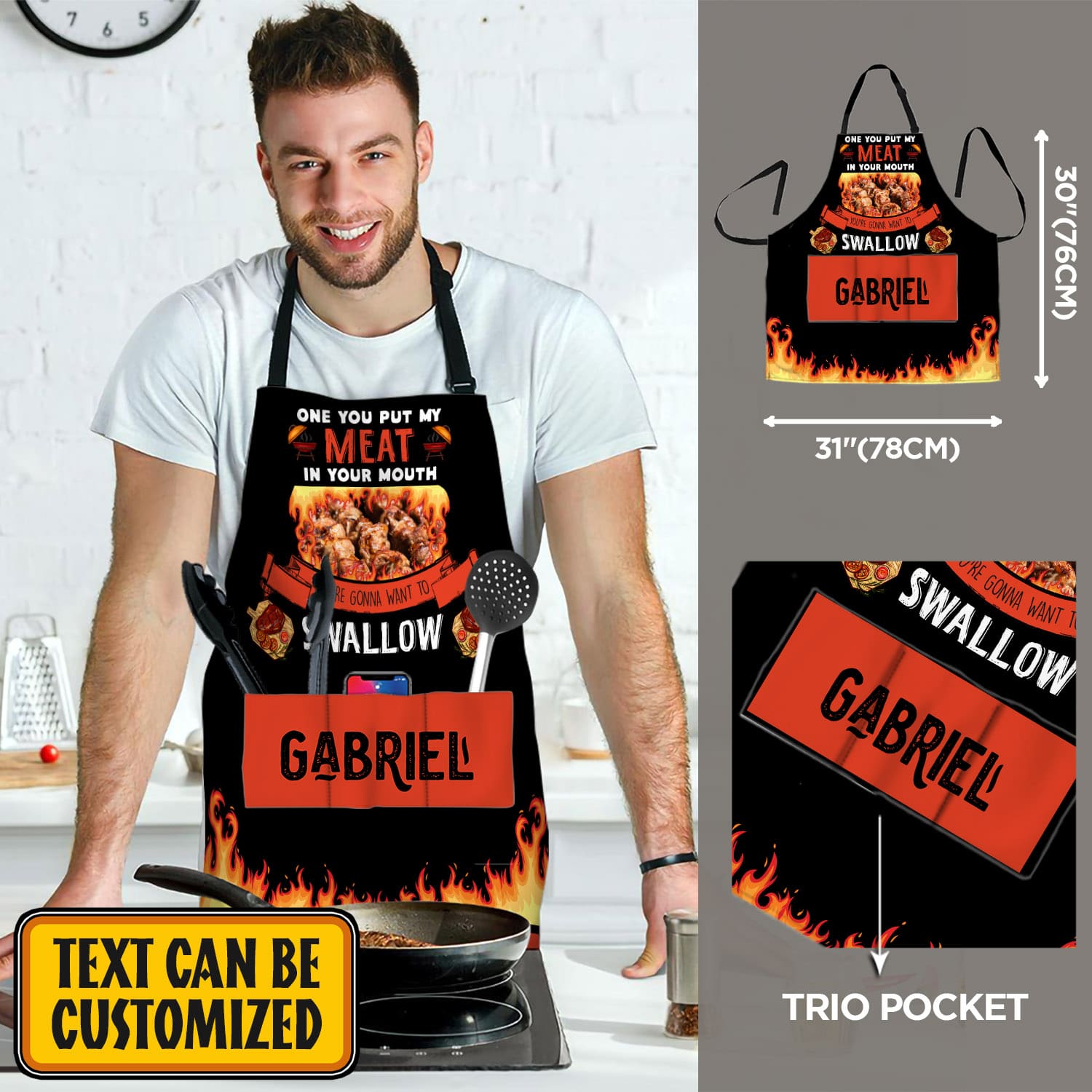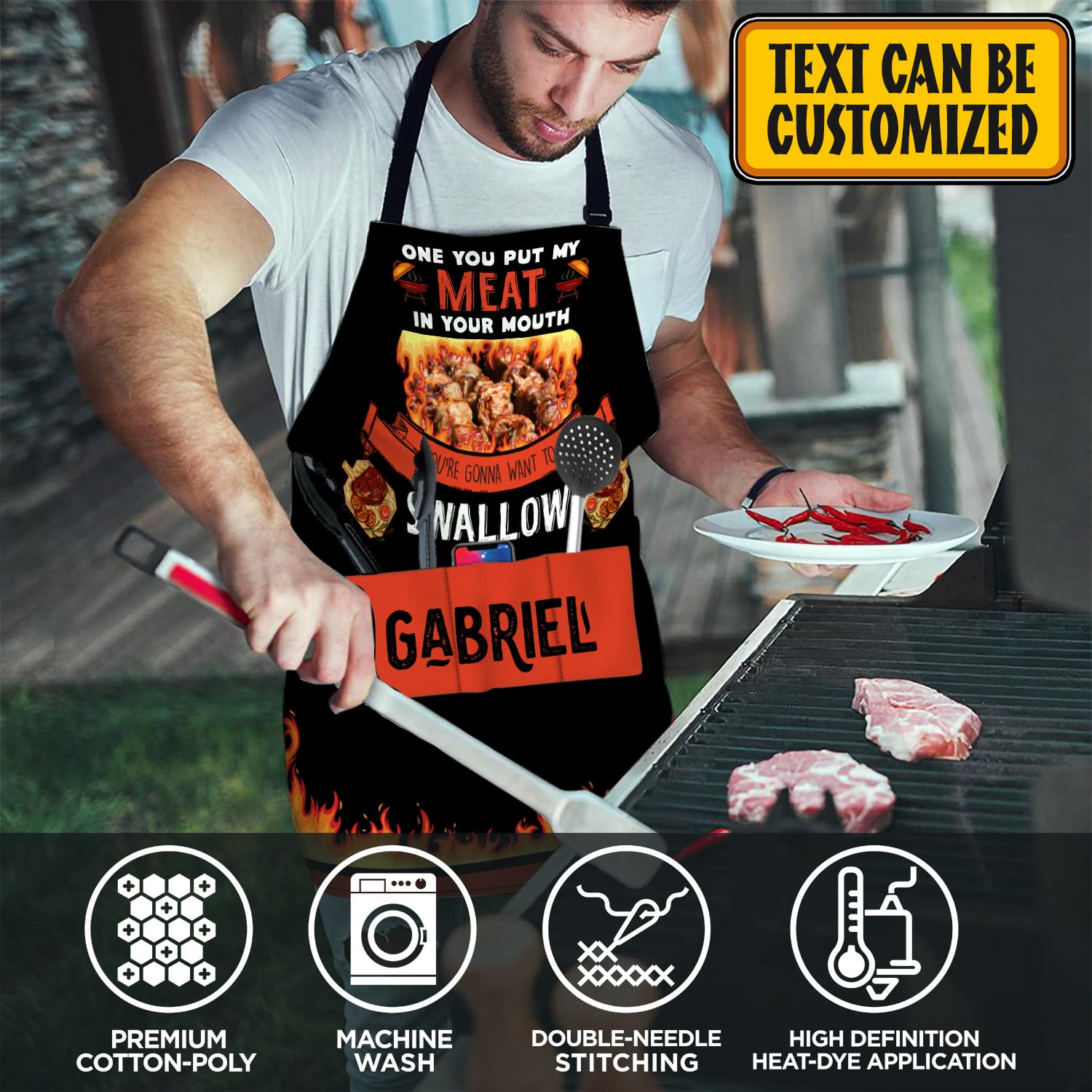 Let’s Shop Personalized Aprons For Dad Once You Put My Meat in Your Mouth Funny Cooking Apron With Three Pockets – Adjustable Neck Strap!