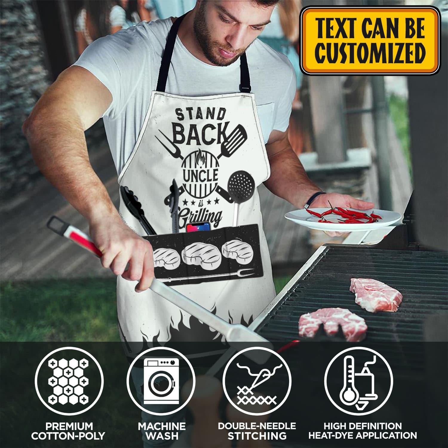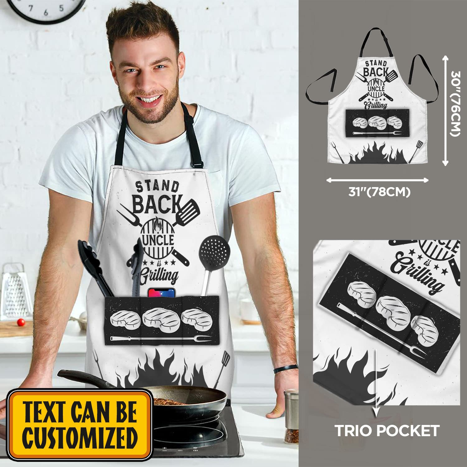 Let’s Shop Personalized Aprons For Dad Stand Back Papa Is Grilling Funny Cooking Apron With Three Pockets – Adjustable Neck Strap!