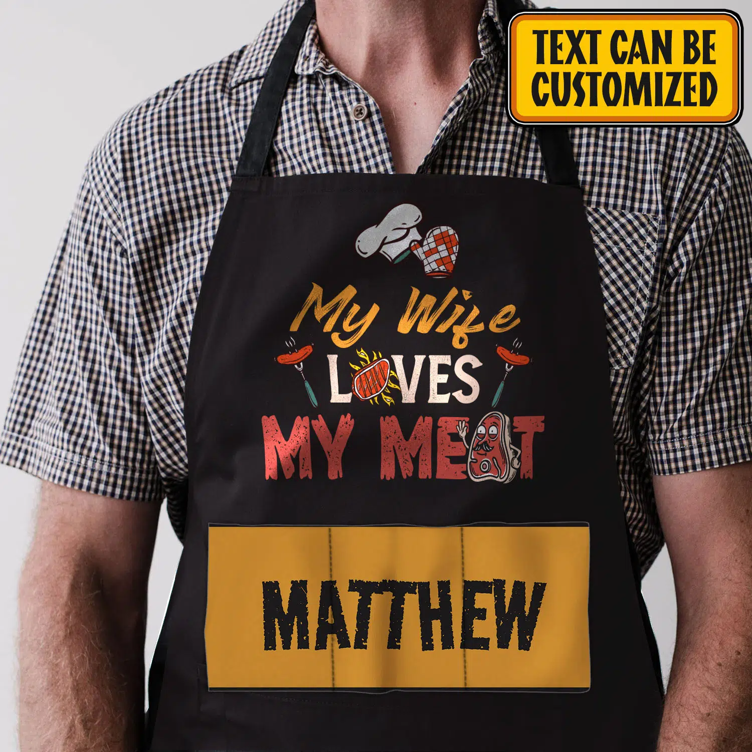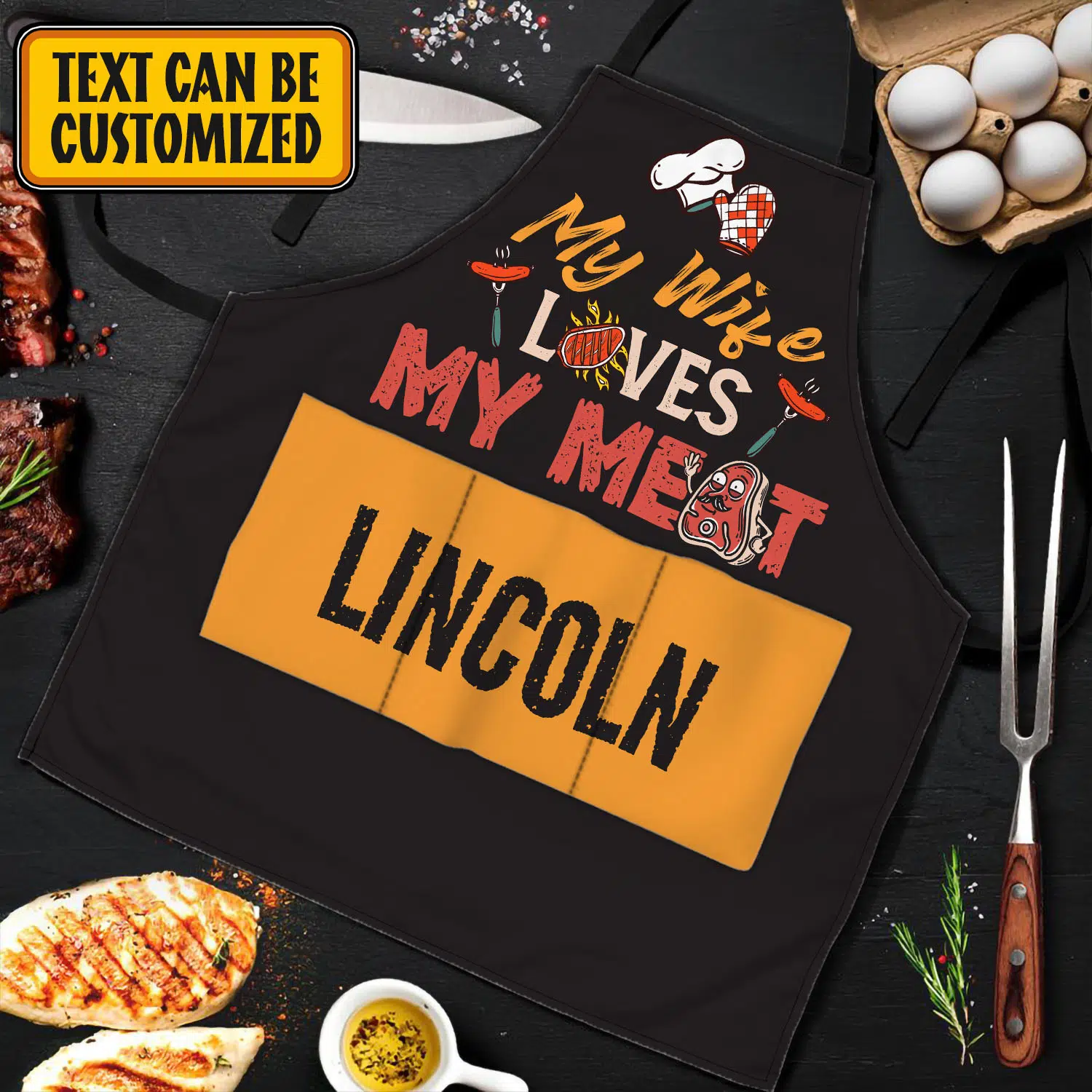 Let’s Shop Personalized Aprons For Husband My Wife Loves My Meat Funny Cooking Apron With Three Pockets – Adjustable Neck Strap!